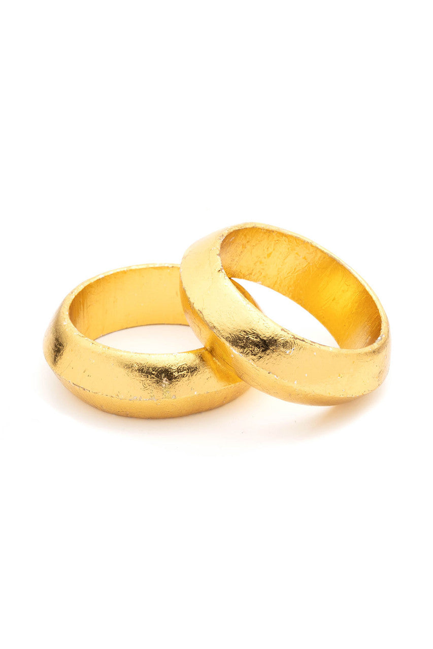 Acacia Wood Thin Bangle Bracelet - gold