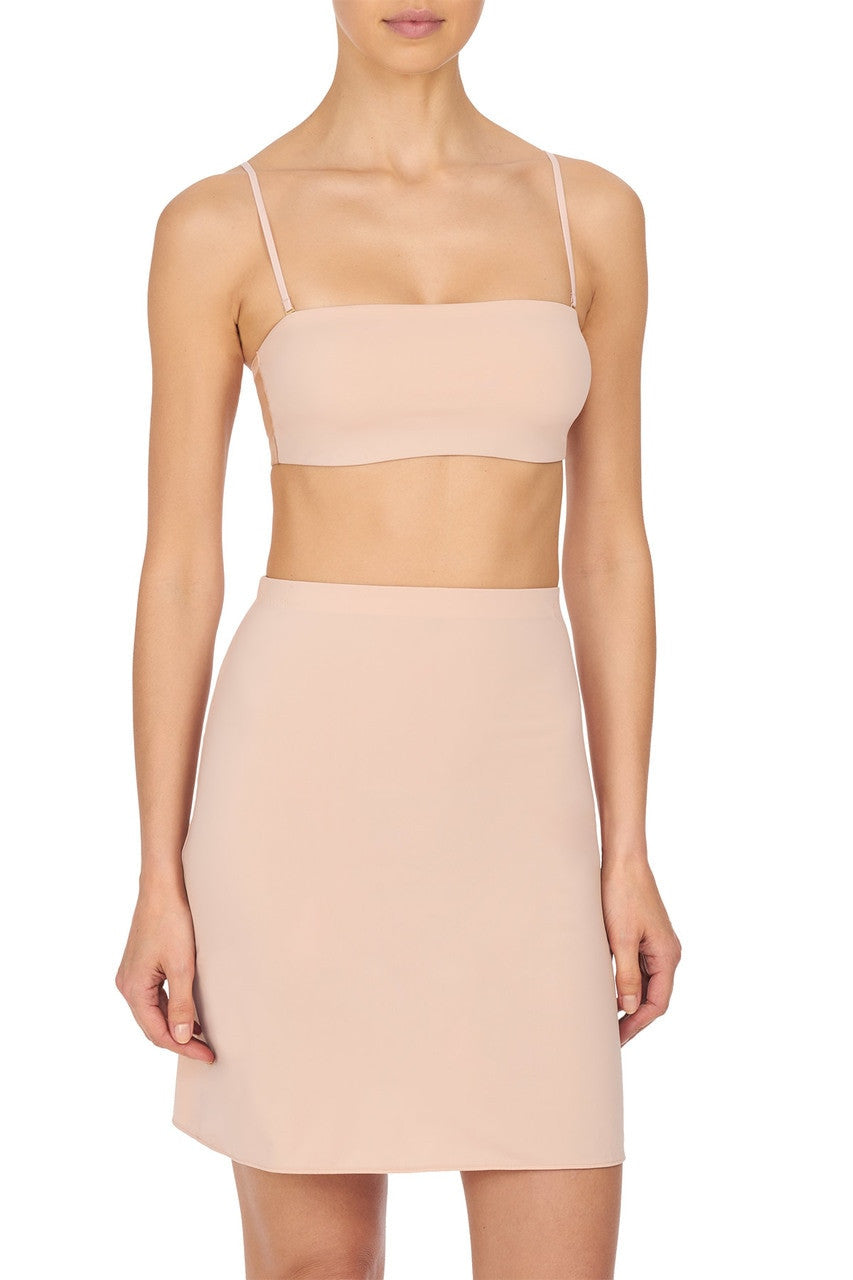 This essential half slip hits at the mid-thigh for wardrobe versatility and lays invisible under clothing with no clinging or bunching.