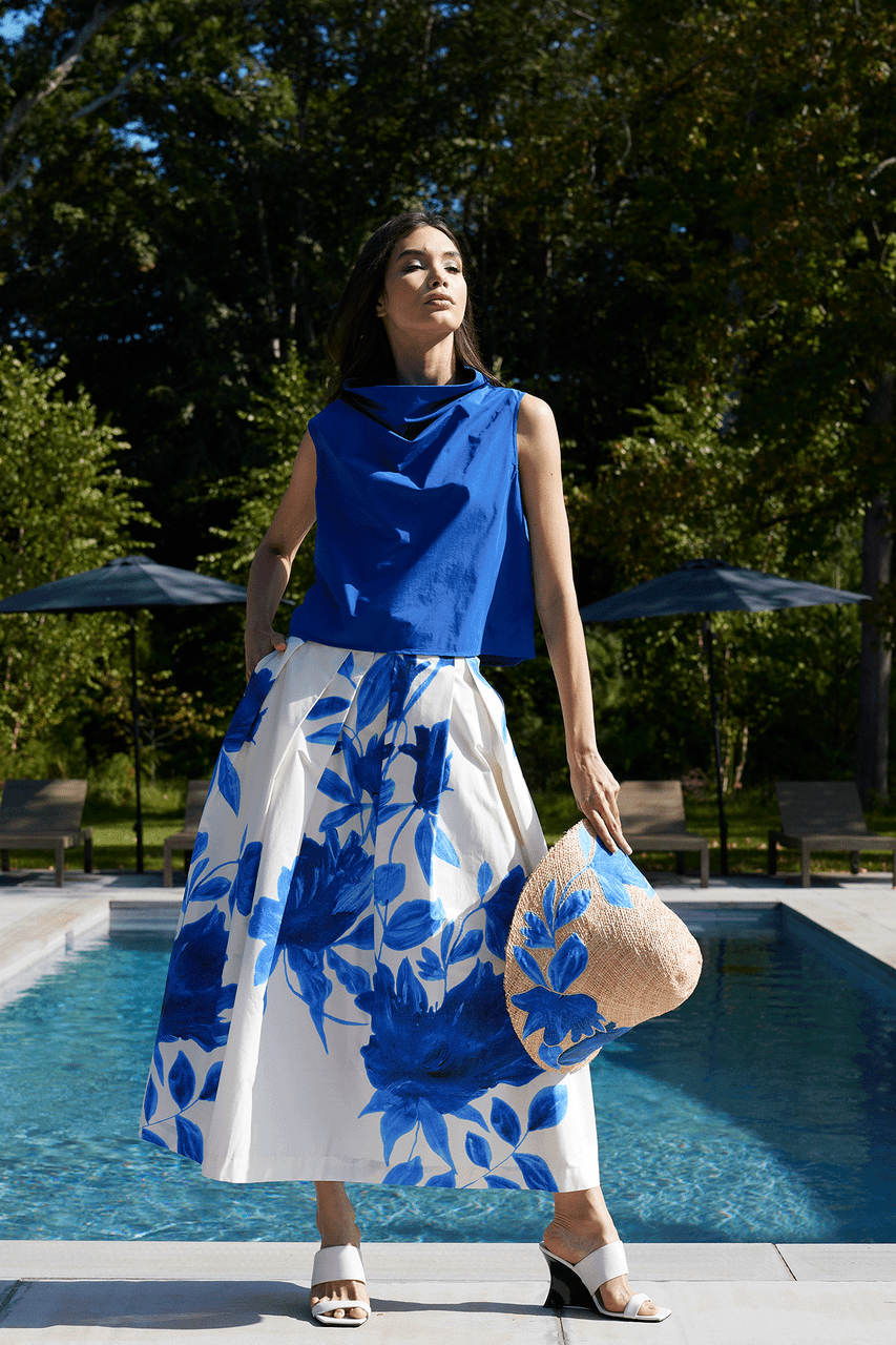 Andora Printed Cotton Poplin Maxi Skirt