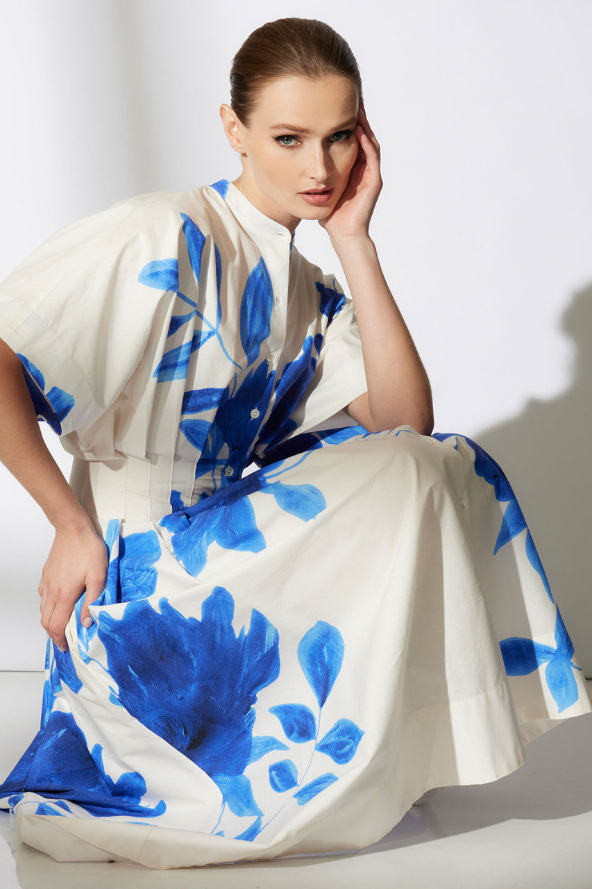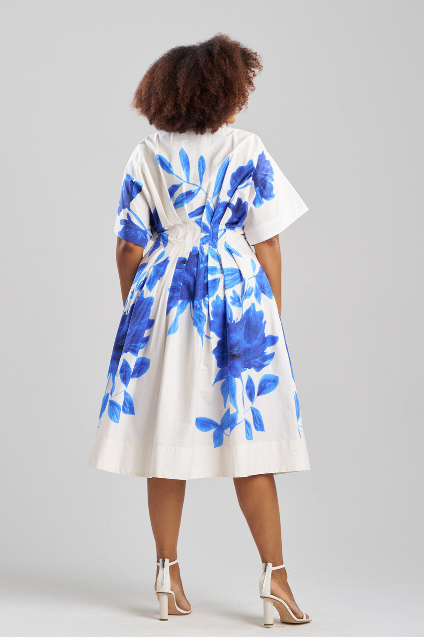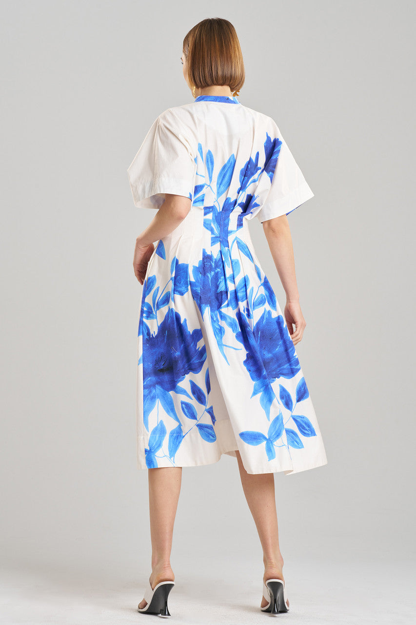 Andora Printed Cotton Poplin Pleated Dress - majorelle