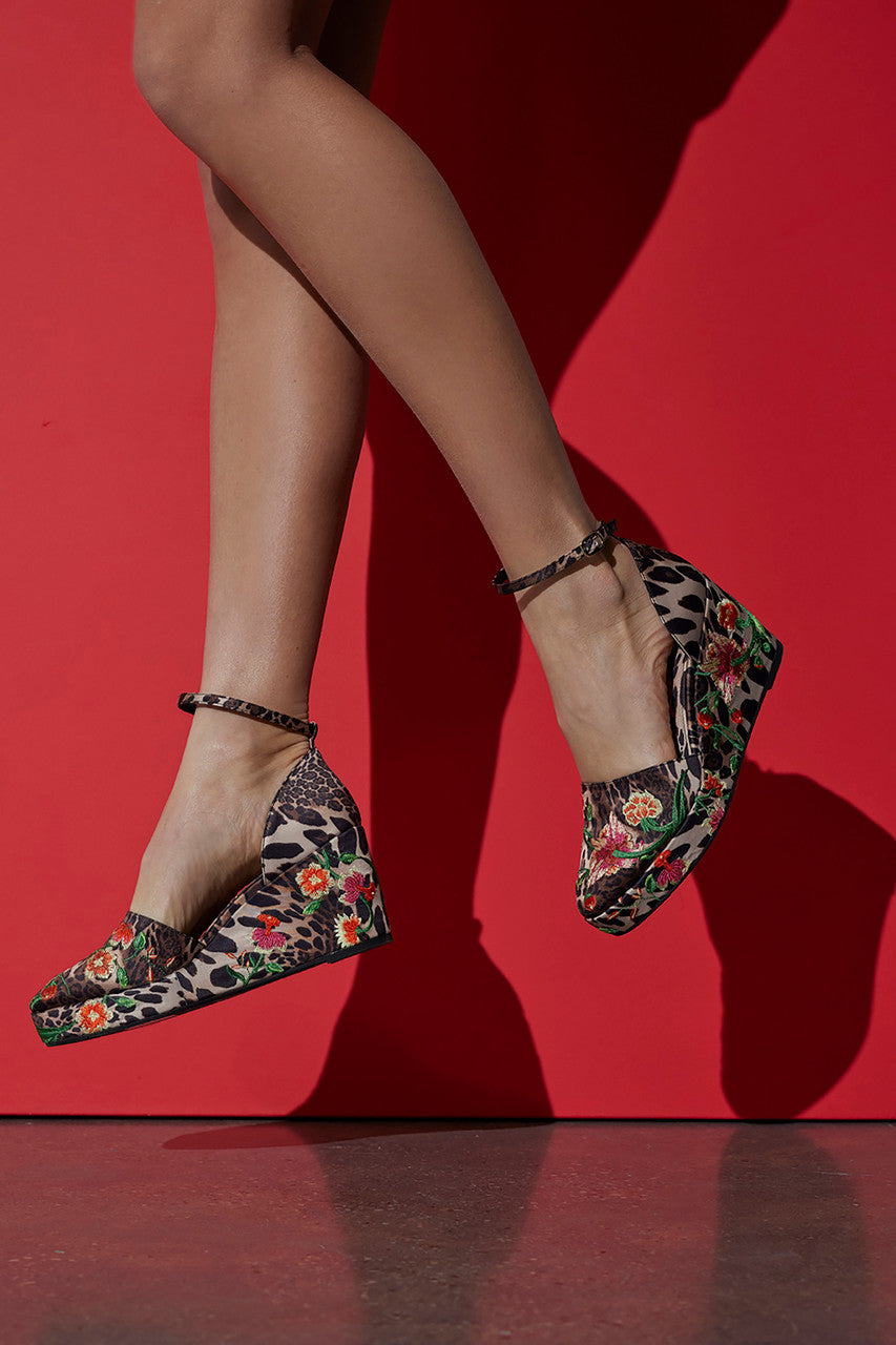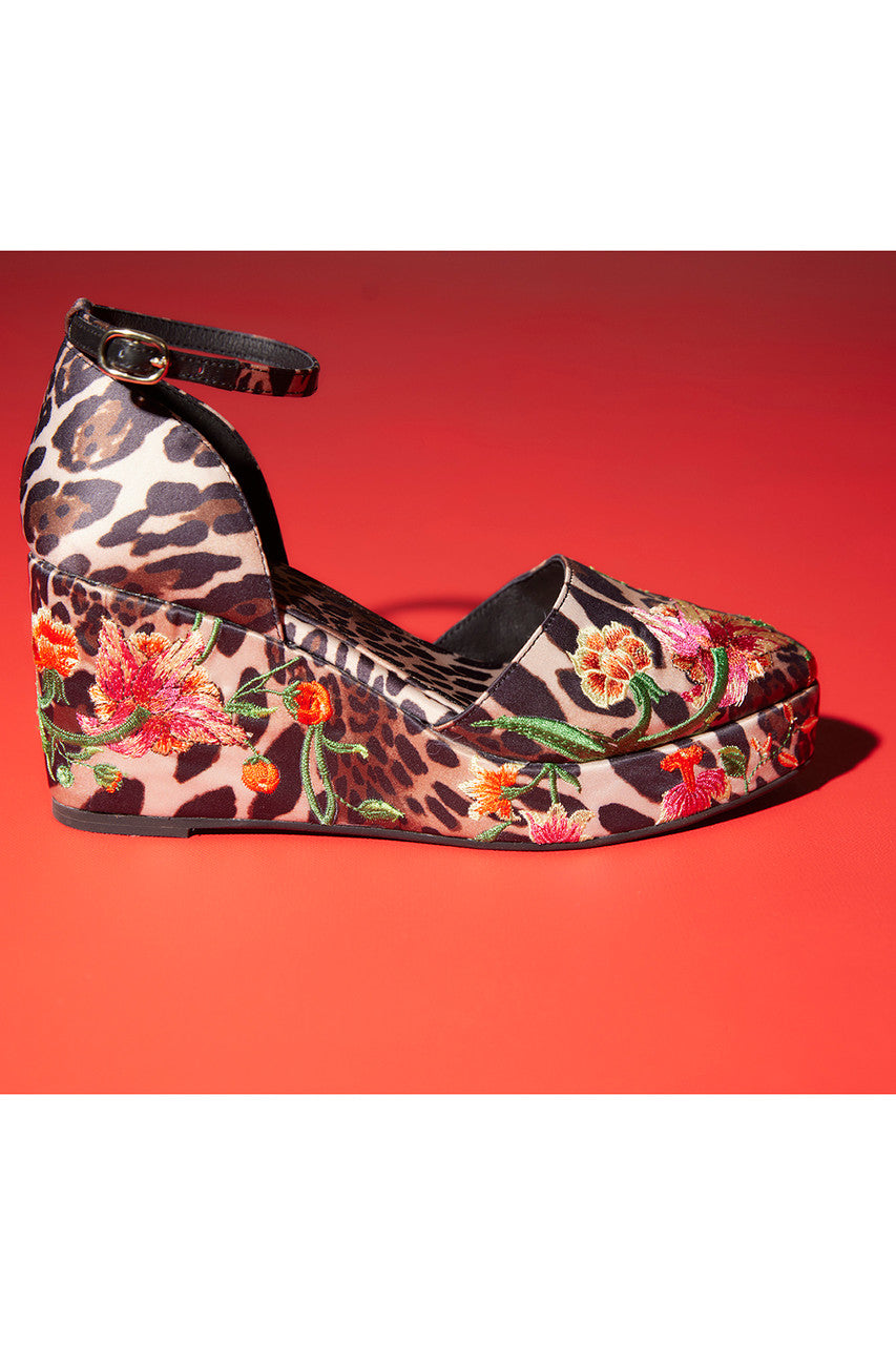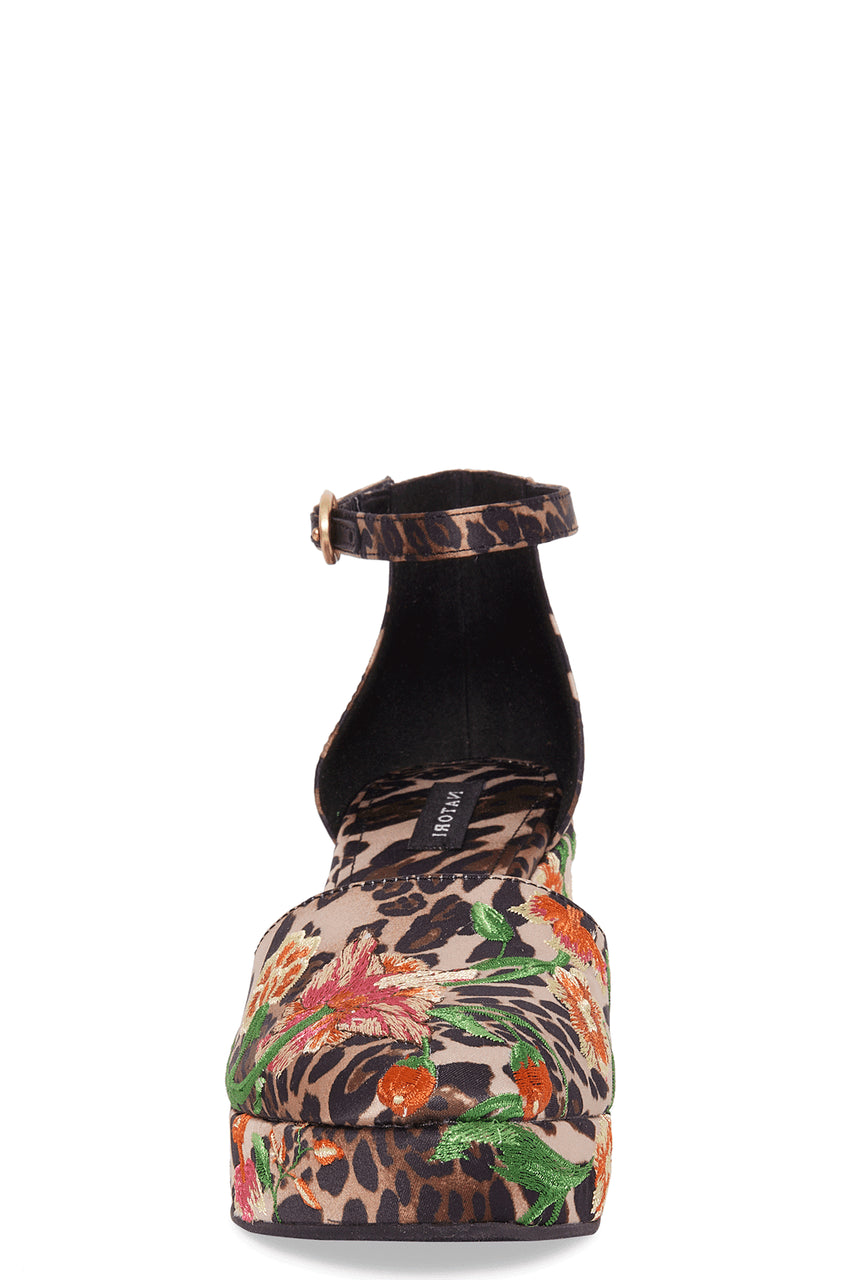 - Fabric: 100% polyester, Heel: 3.07", Platform: 0.90"