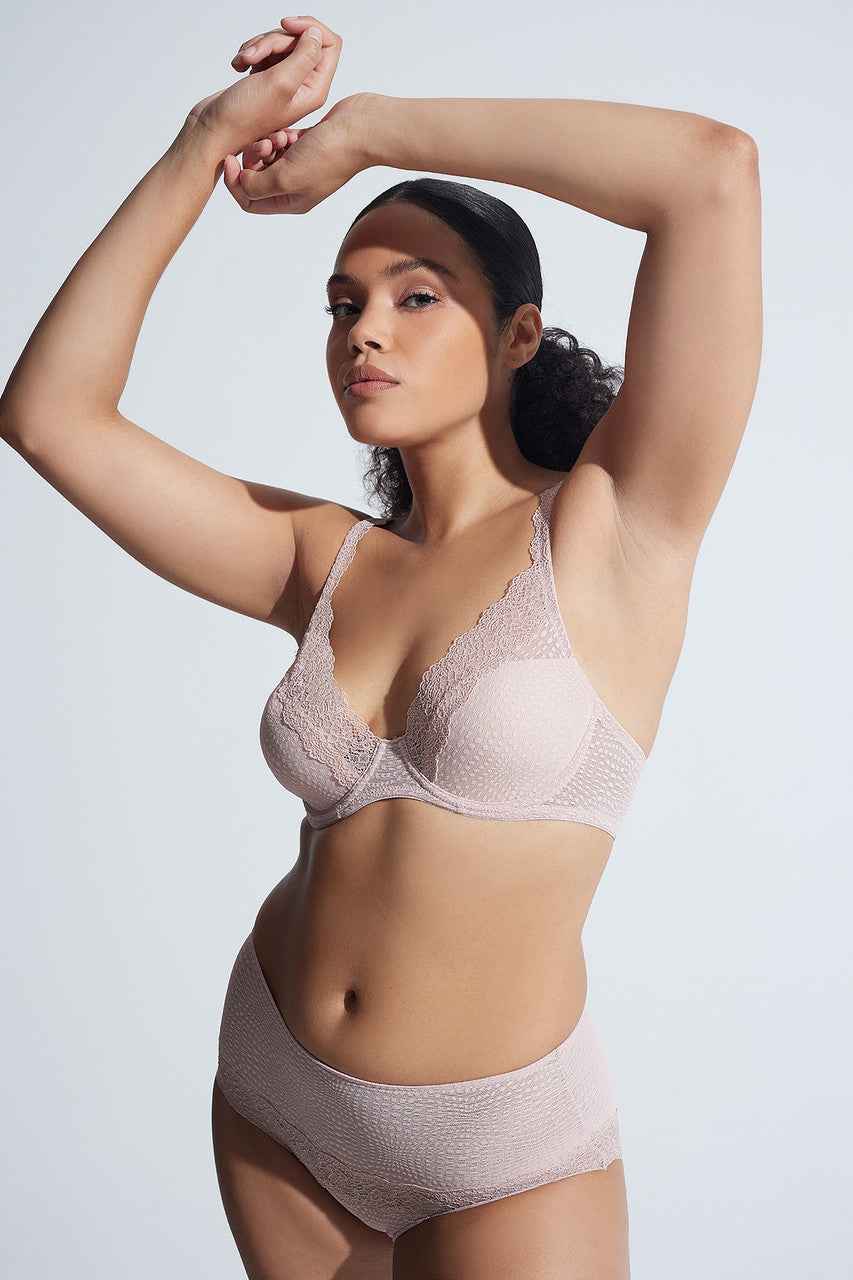 • Convertible contour underwire designed with innovative two-way stretch lace with a unique geo animal pattern and a delicate lace trim