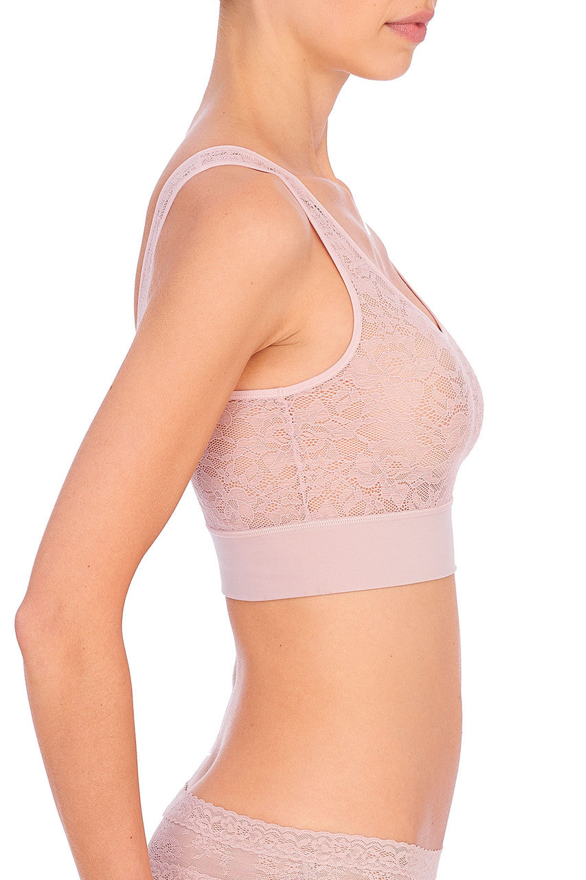 Modern balconette shape paired with classic lace and breathable mesh makes for a supportive unlined silhouette with great projection.