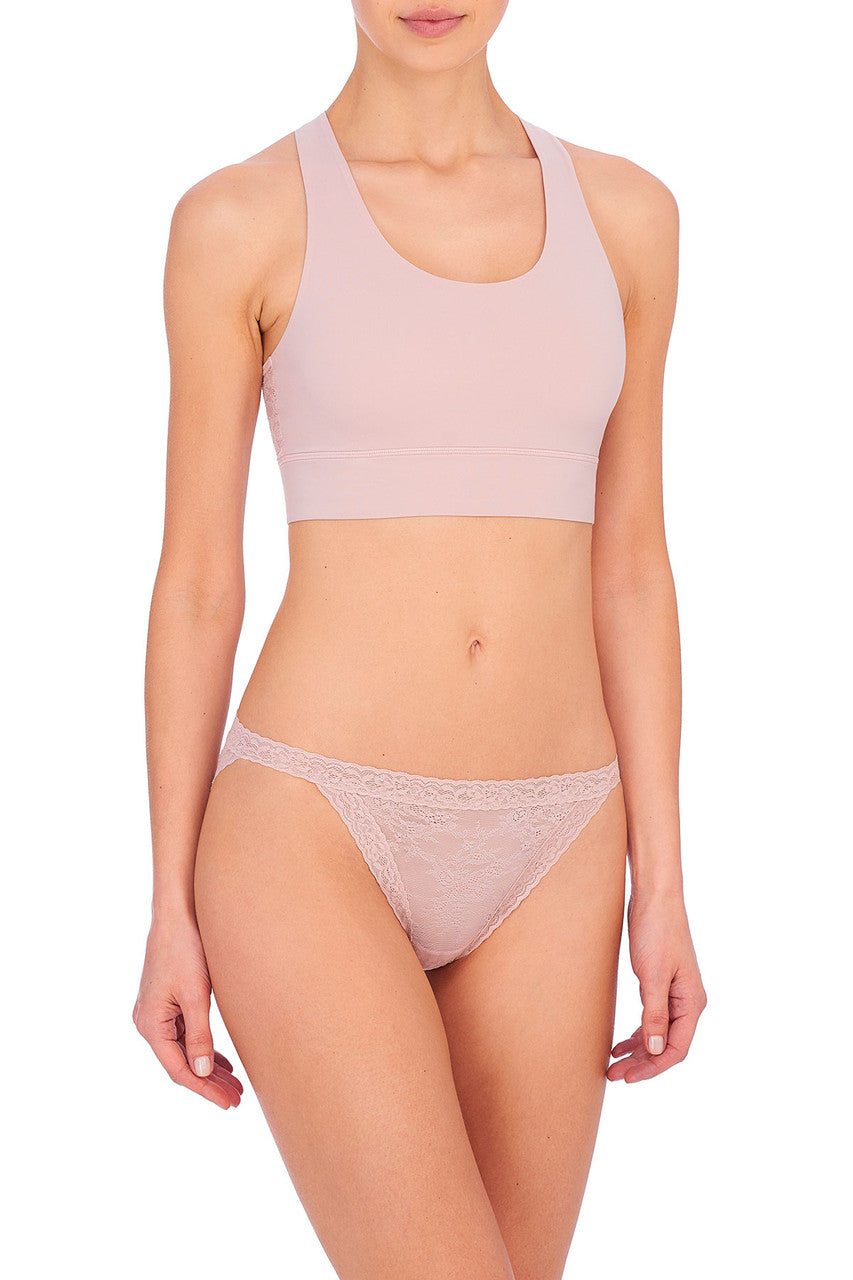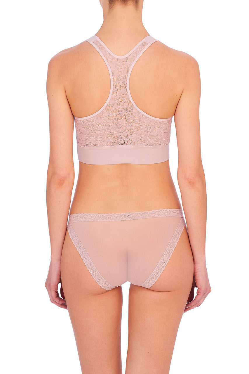 Modern balconette shape paired with classic lace and breathable mesh makes for a supportive unlined silhouette with great projection.