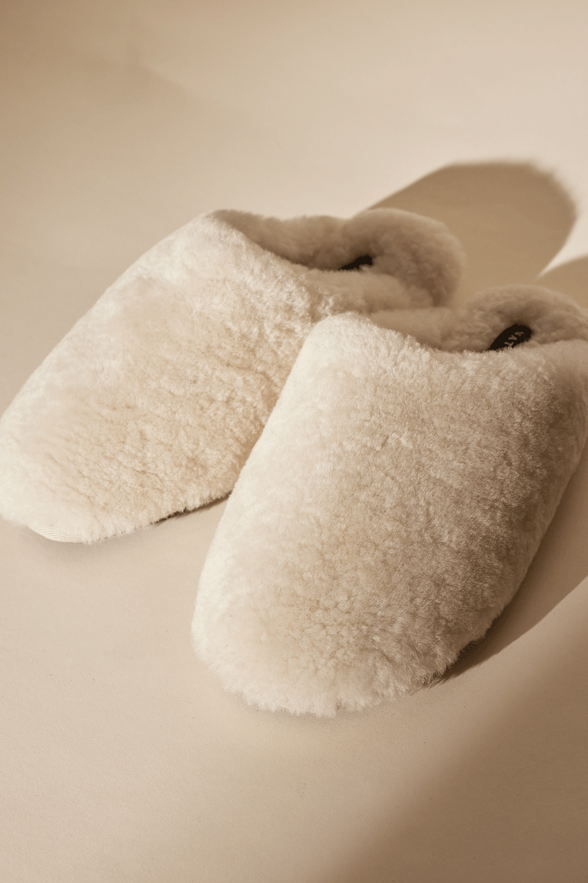 Slip-on cozy shearling slipper to lounge comfortably indoors.