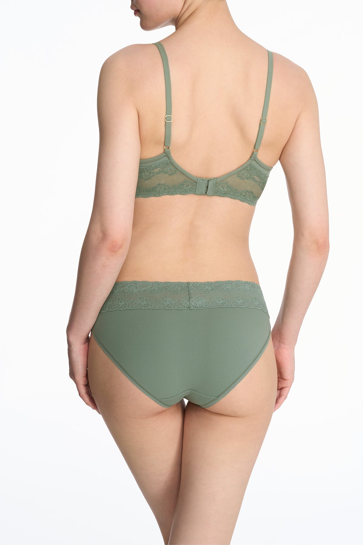 • Plush lace trim with 360 degree jersey fabric for all day comfort