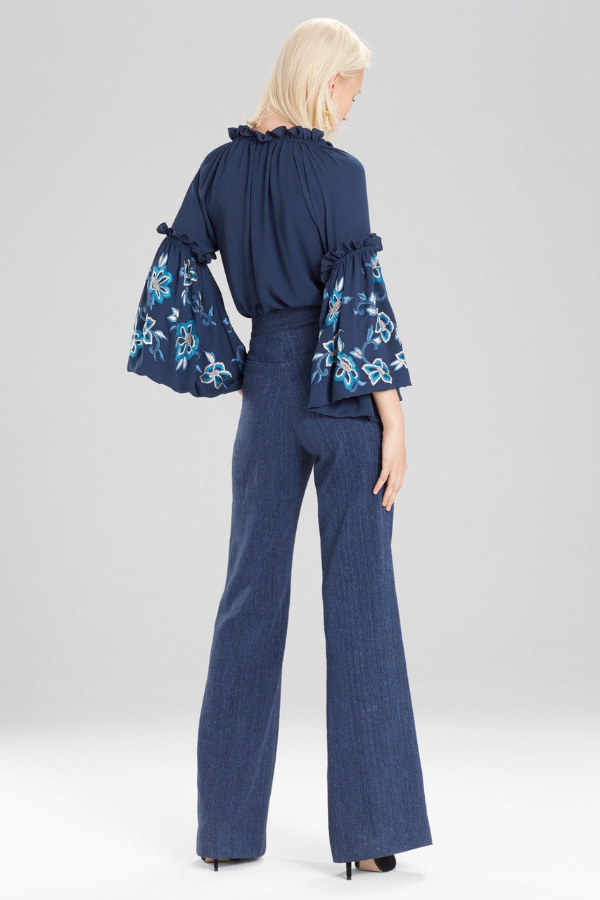 Casual Twill Wide Leg Pants - denim blue