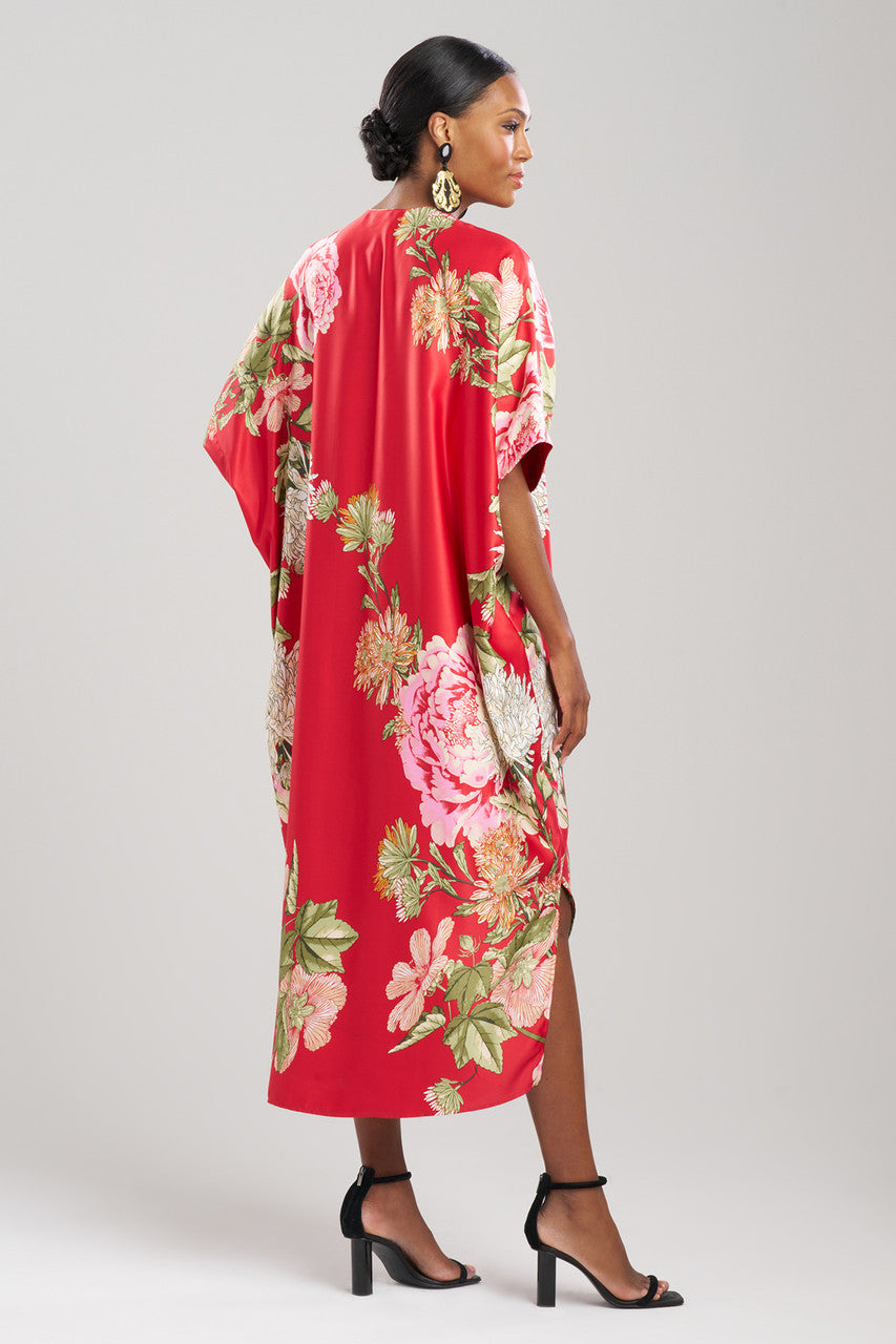 Caterina V-Neck Caftan - brocade red