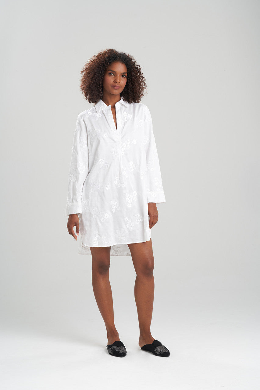 Cheetah Embroidery Cotton Sleepshirt - White