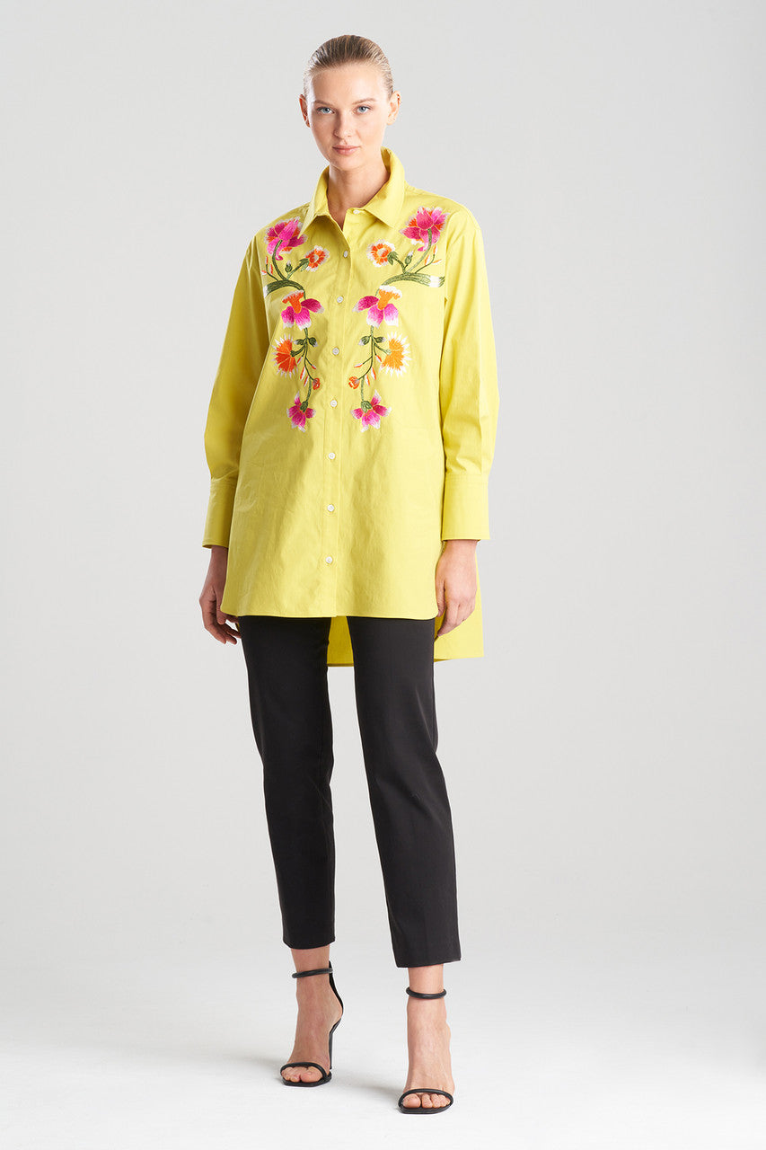Chikayo Cotton Poplin Oversized Embroidered Shirt - chartreuse