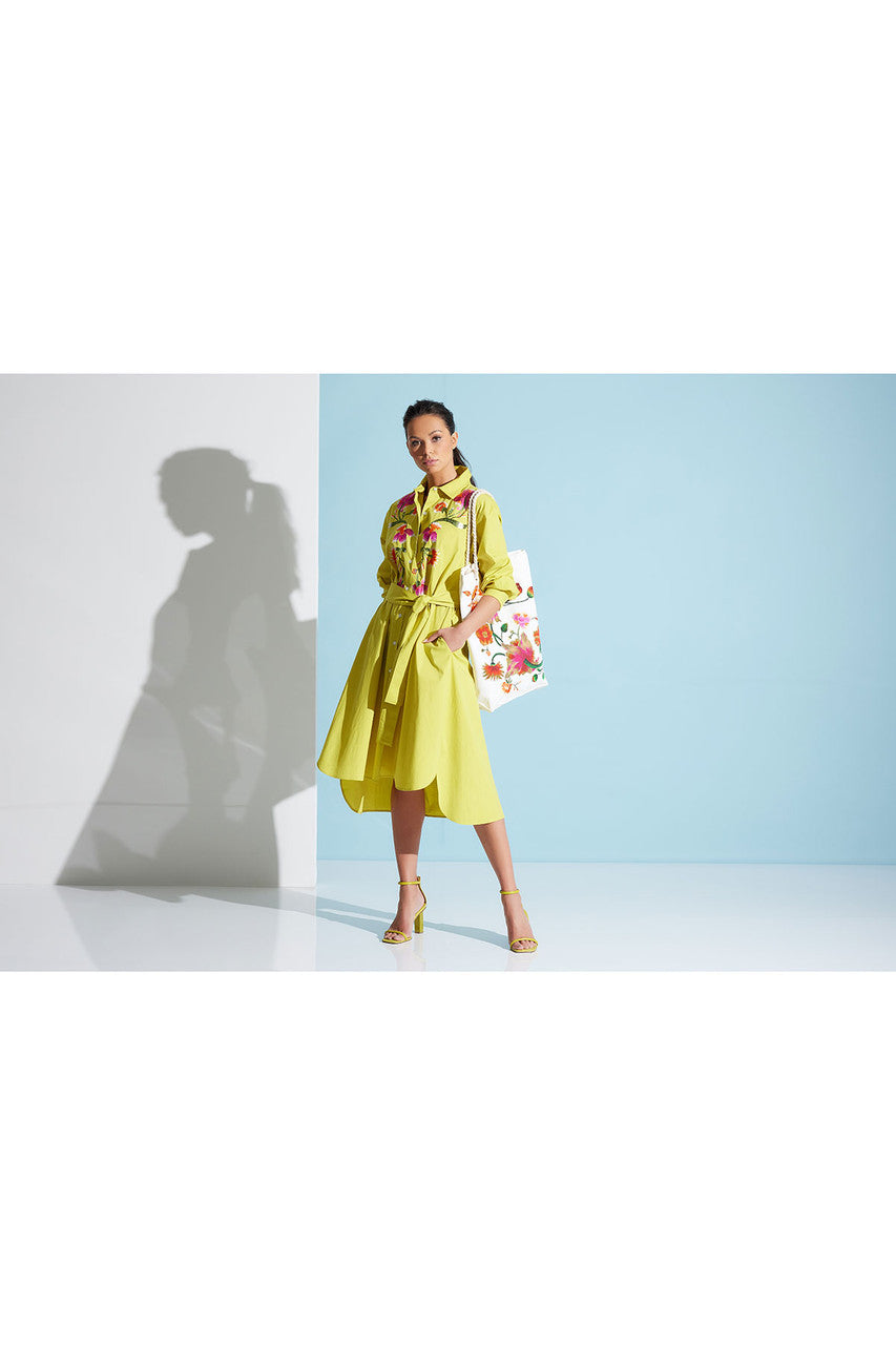 Chikayo Cotton Poplin Oversized Embroidered Shirtdress - chartreuse