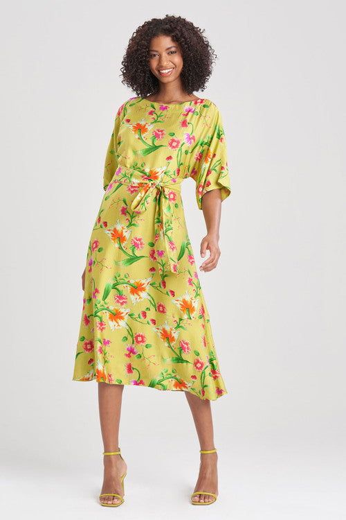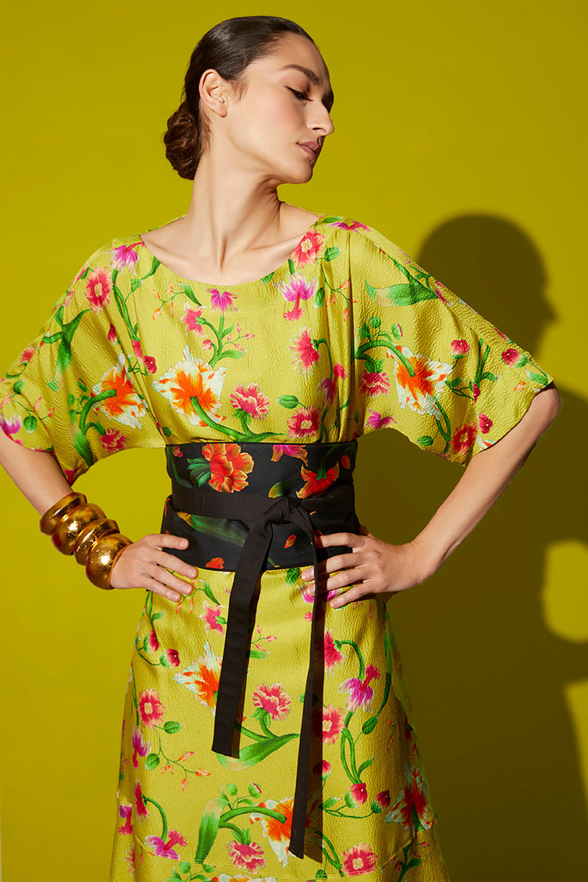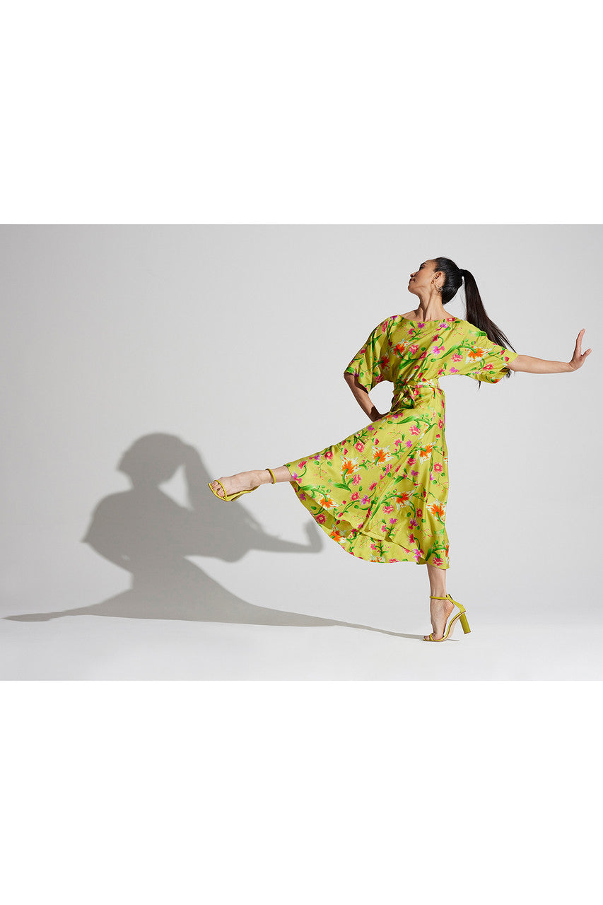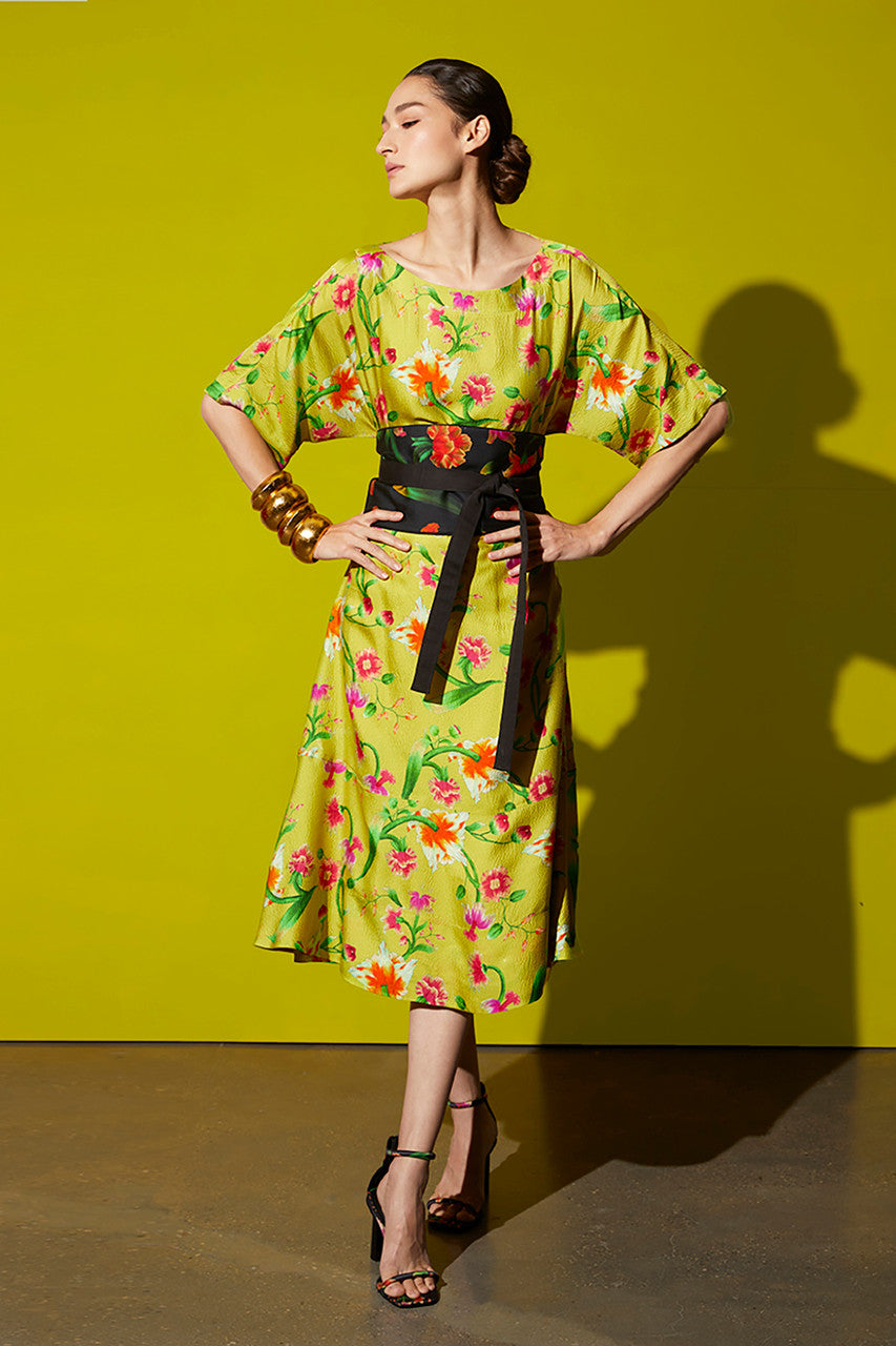 Chikayo-Obi Silk Boatneck Dress - chartreuse