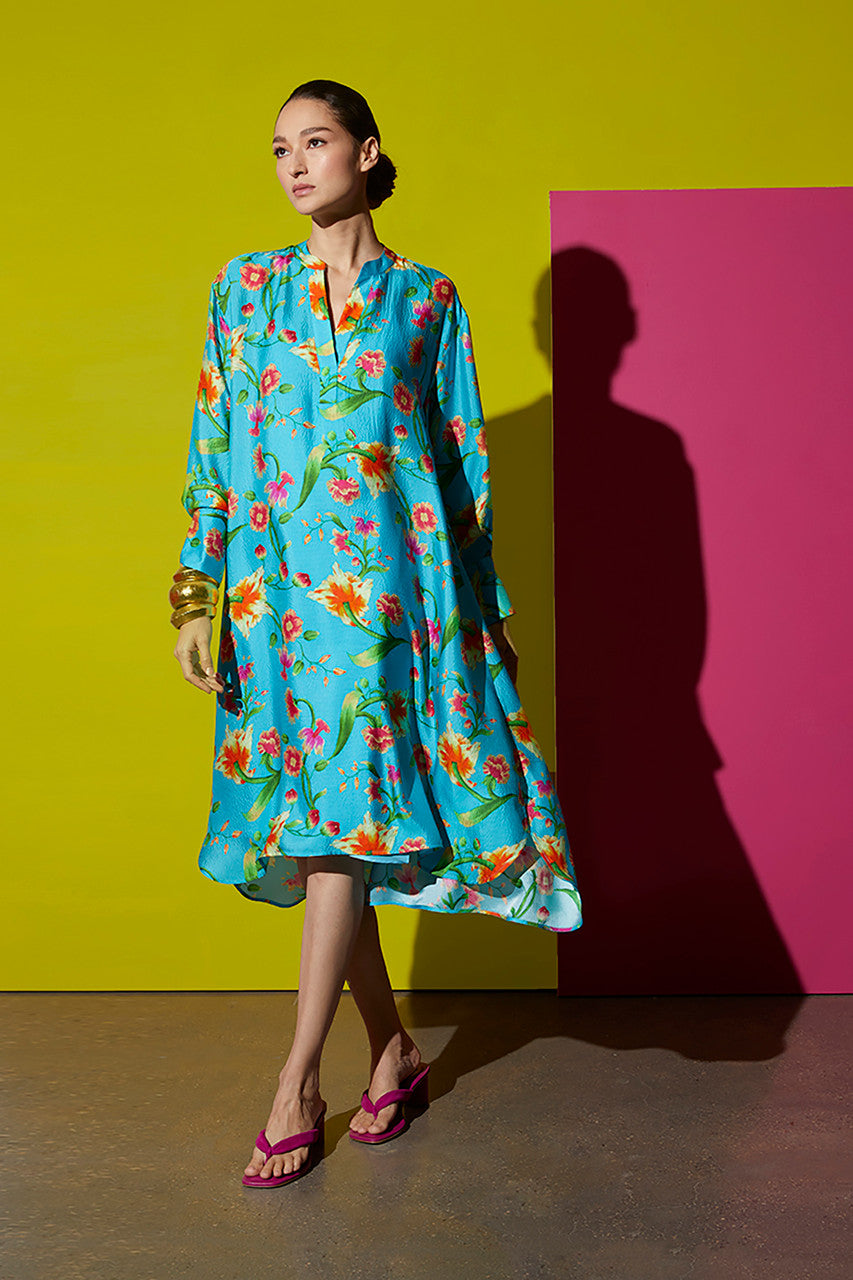 Chikayo-Obi Silk Oversized Shirtdress - aqua