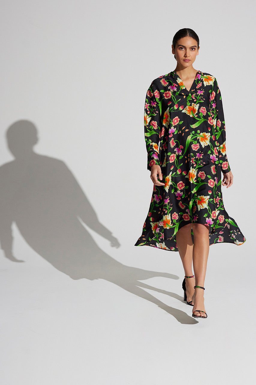 Chikayo-Obi Silk Oversized Shirtdress - Black