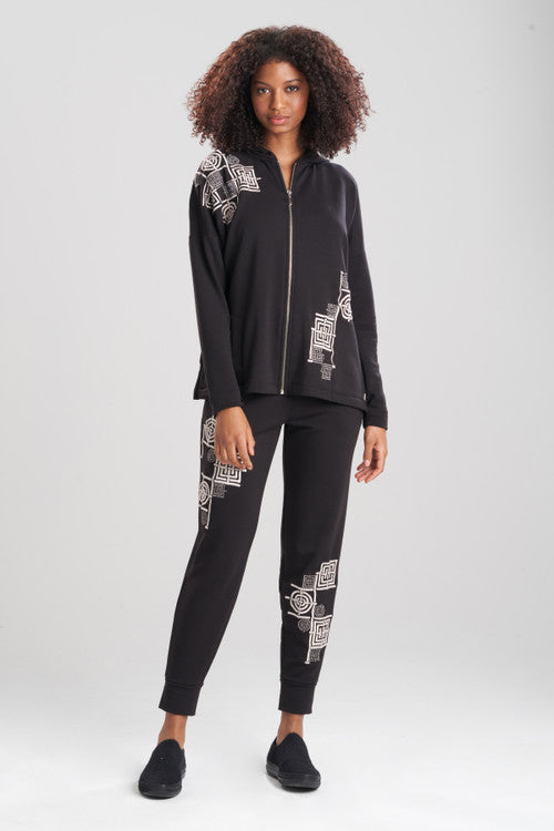 - This relaxed zip up hoodie silhouette with full length sleeves and side seam pockets with a unique and beautiful embroidery