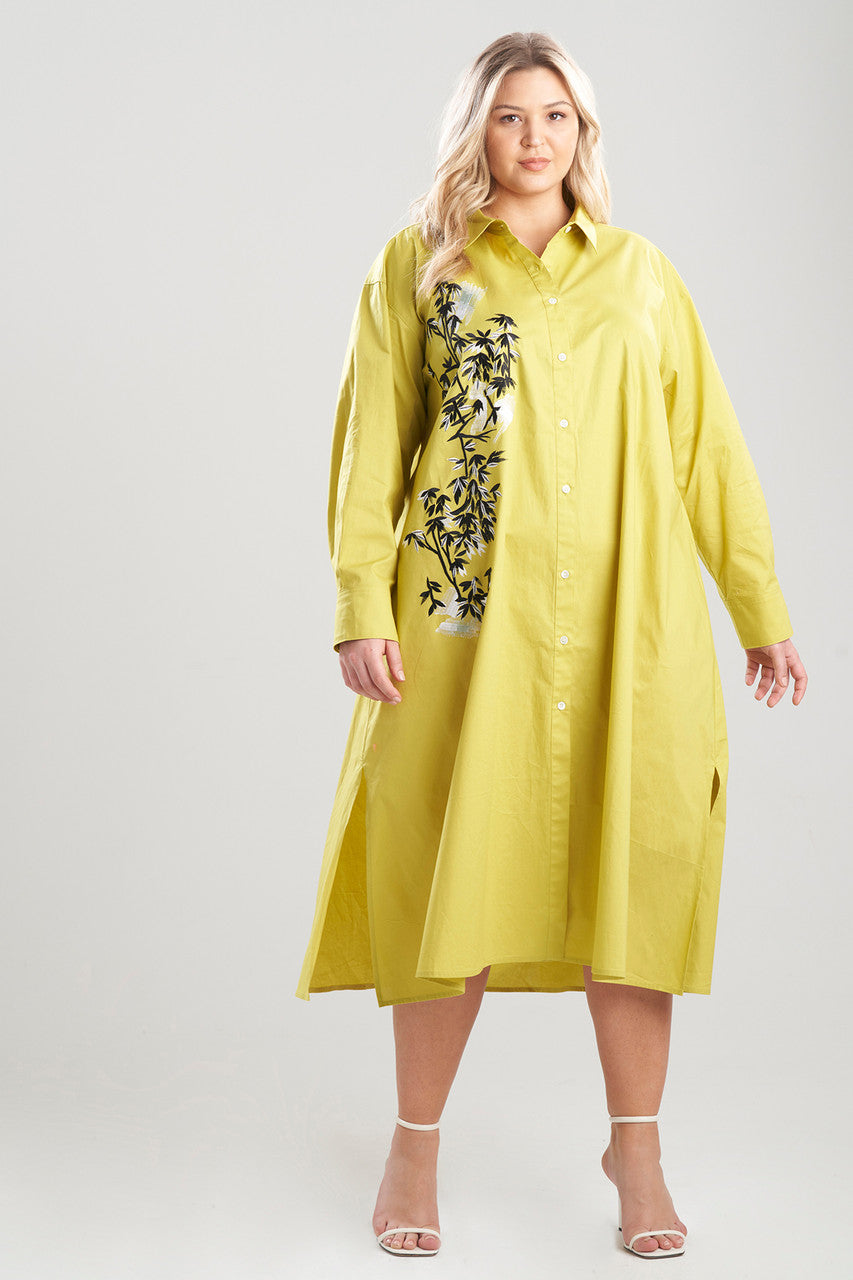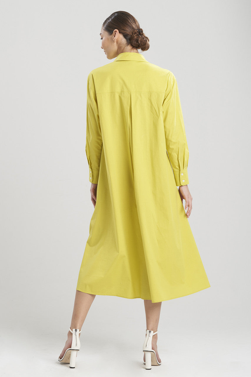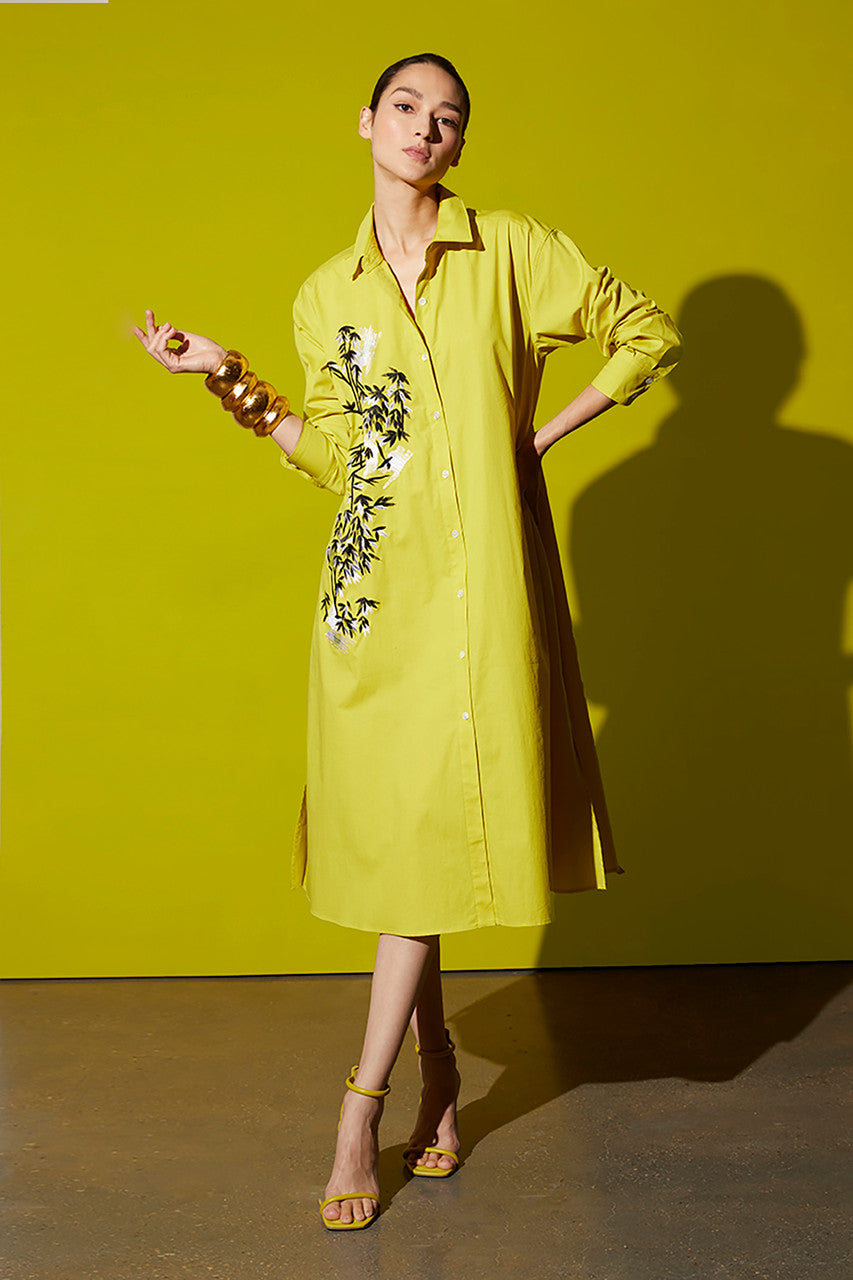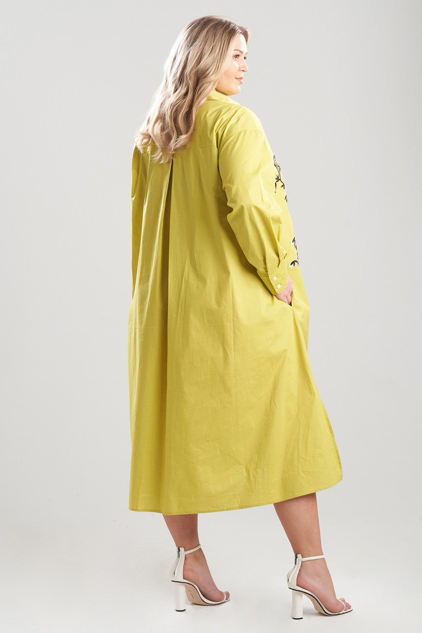 Cotton Poplin Applique Oversized Shirtdress - chartreuse