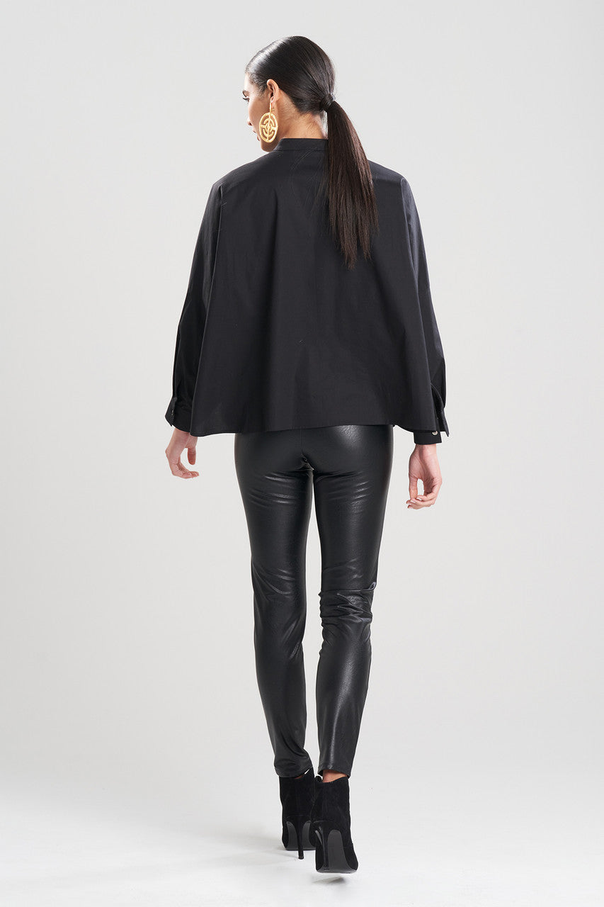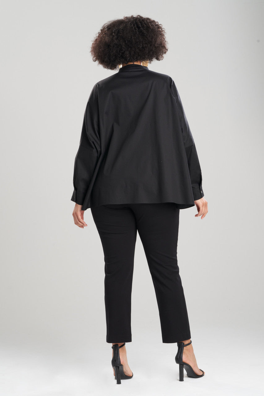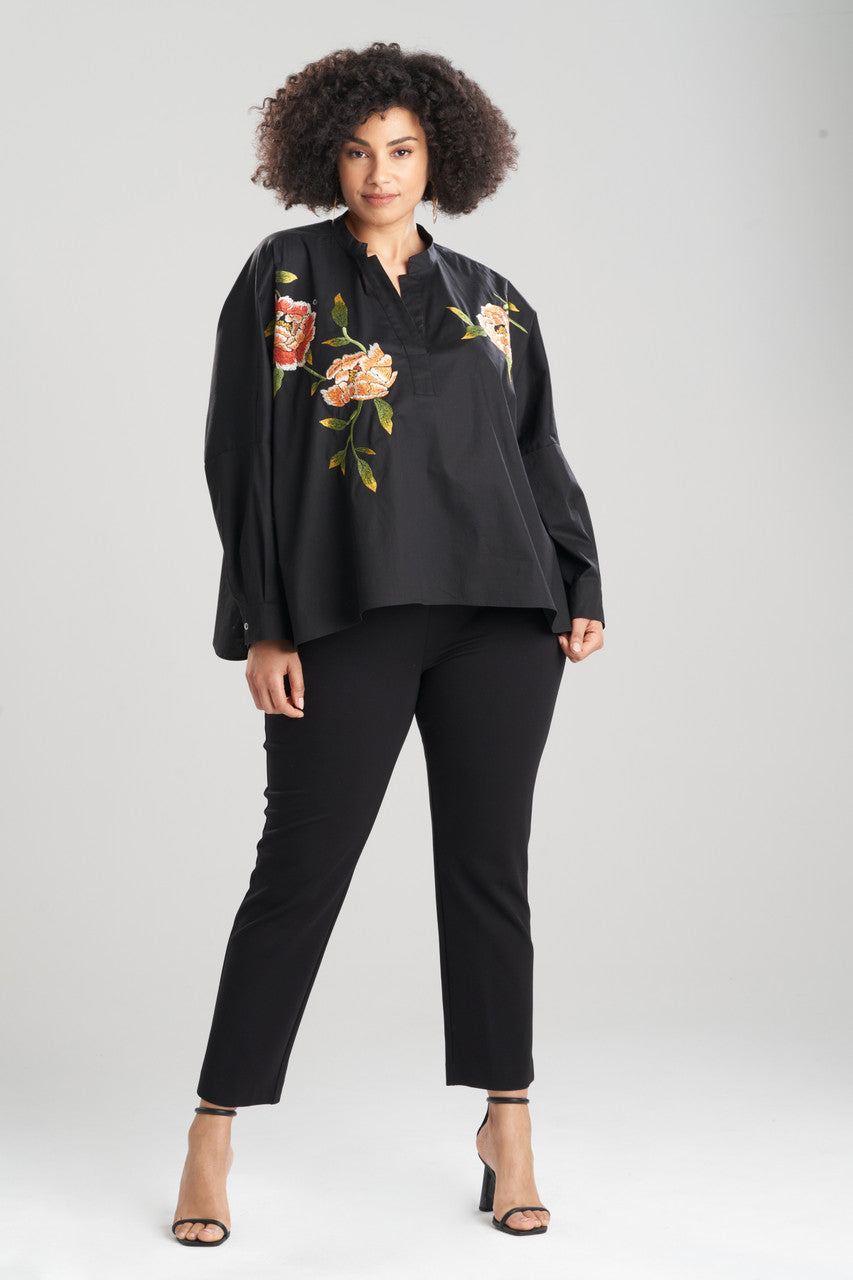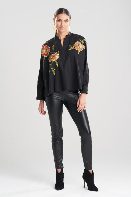 Cotton Poplin Embroidered Caftan Shirt - Black