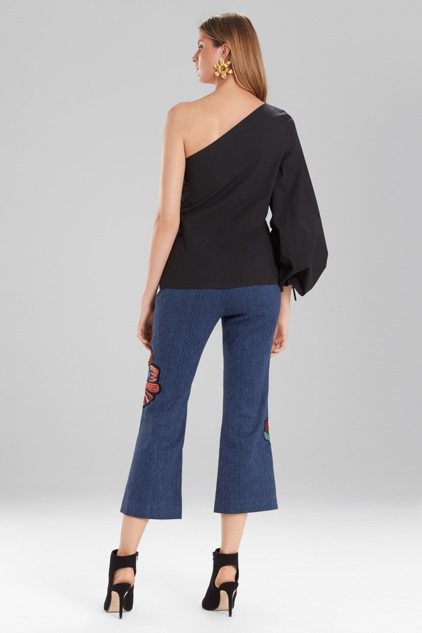Cotton Poplin One Shoulder Drawstring Balloon Sleeve Top