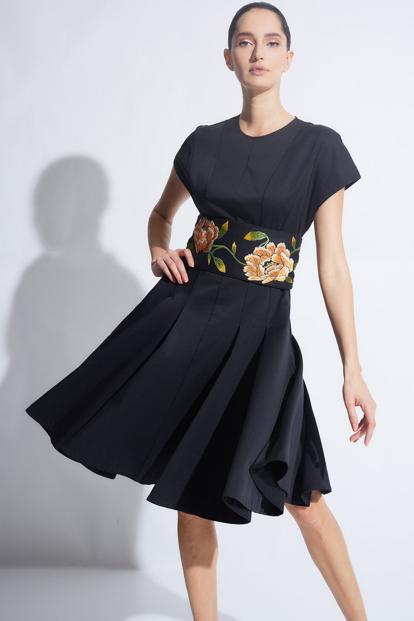 Cotton Sateen Fit & Flare Dress - Black
