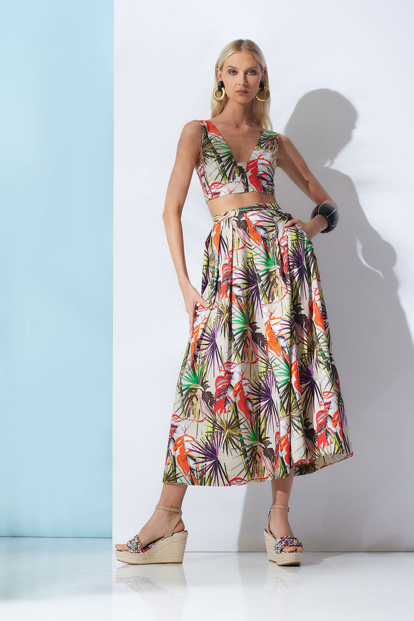 - Maxi skirt with invisible zipper at side seam and metal hook and eye closure
