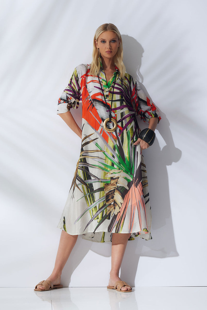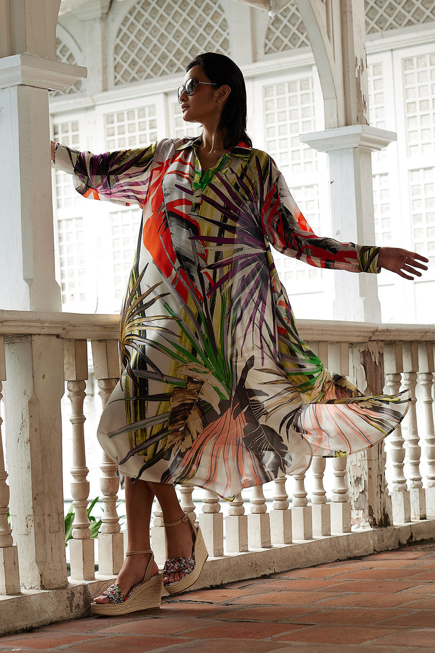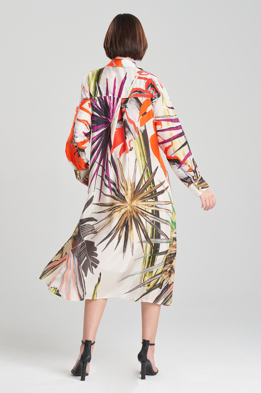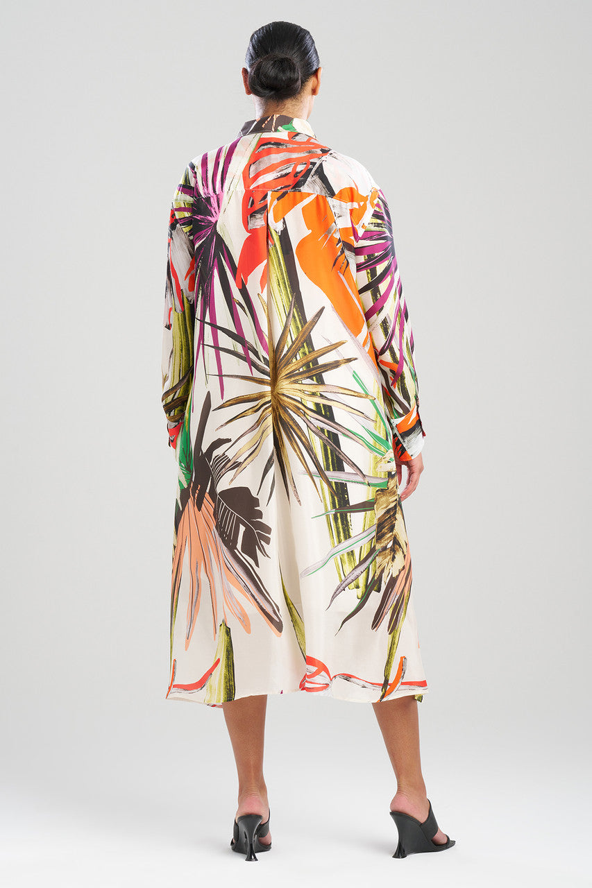 Step in to a tropical oasis as soon as you slip into El Nido printed on silk.
