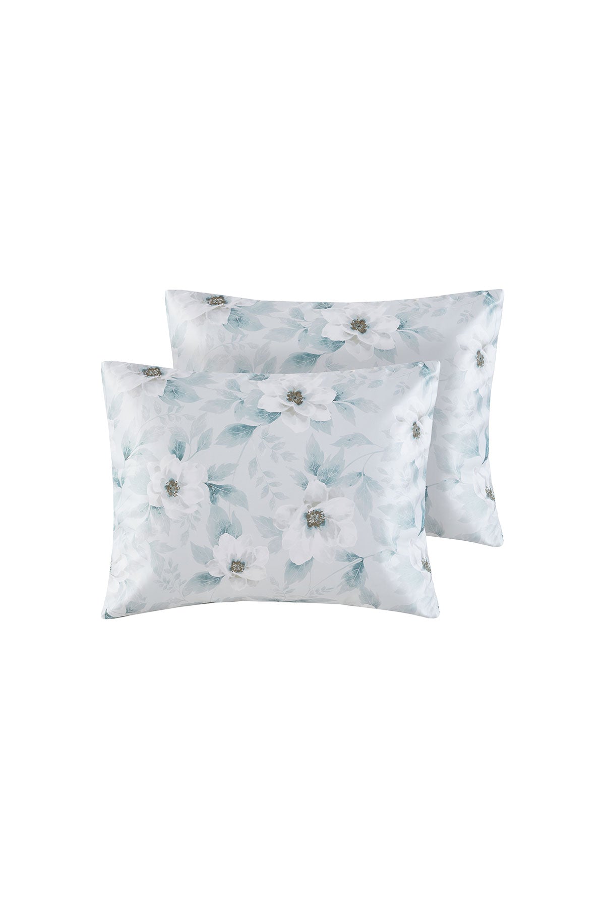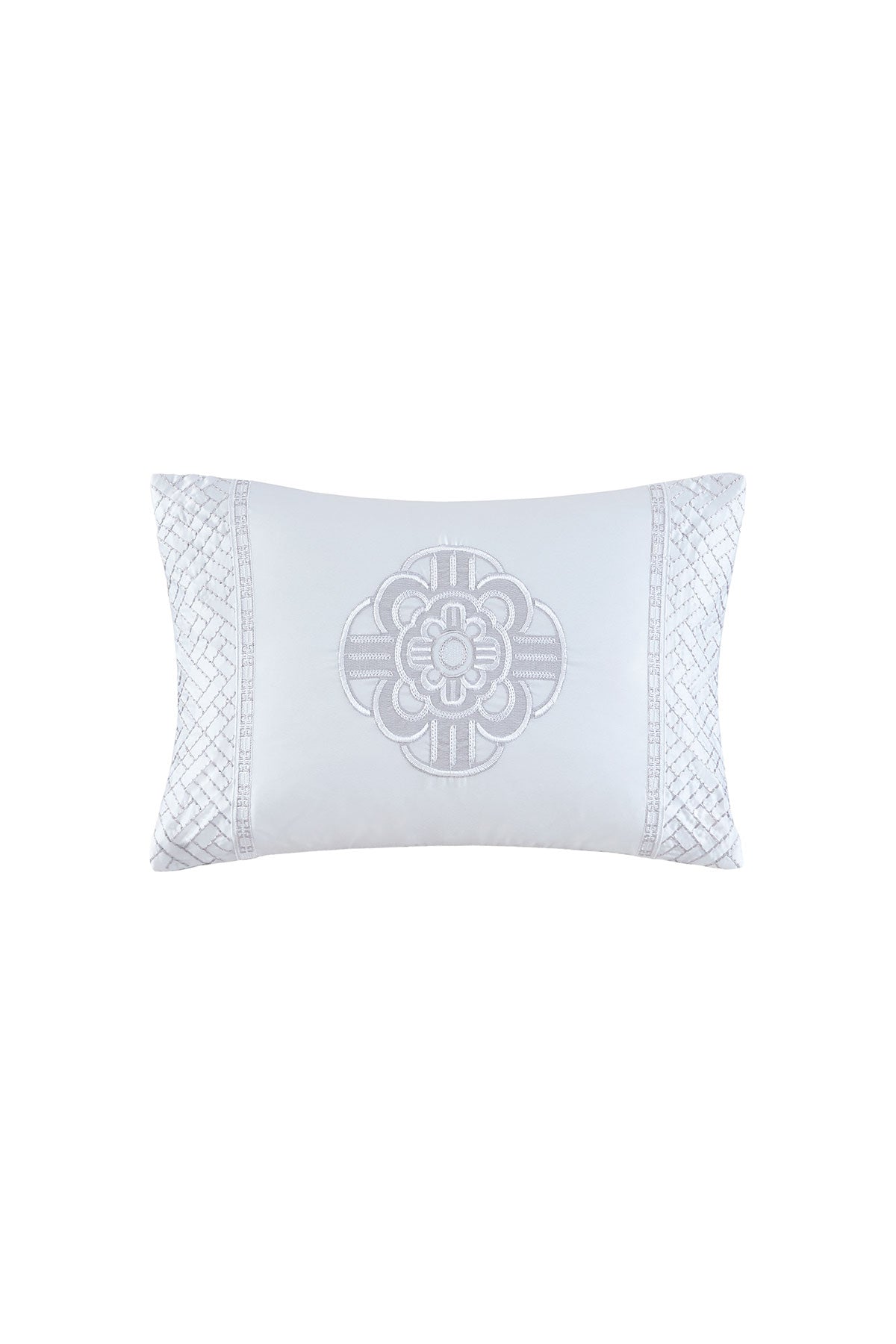 - Throw pillow: 100% poly charmeuse embroidery, polyfill, with hidden zipper at bottom