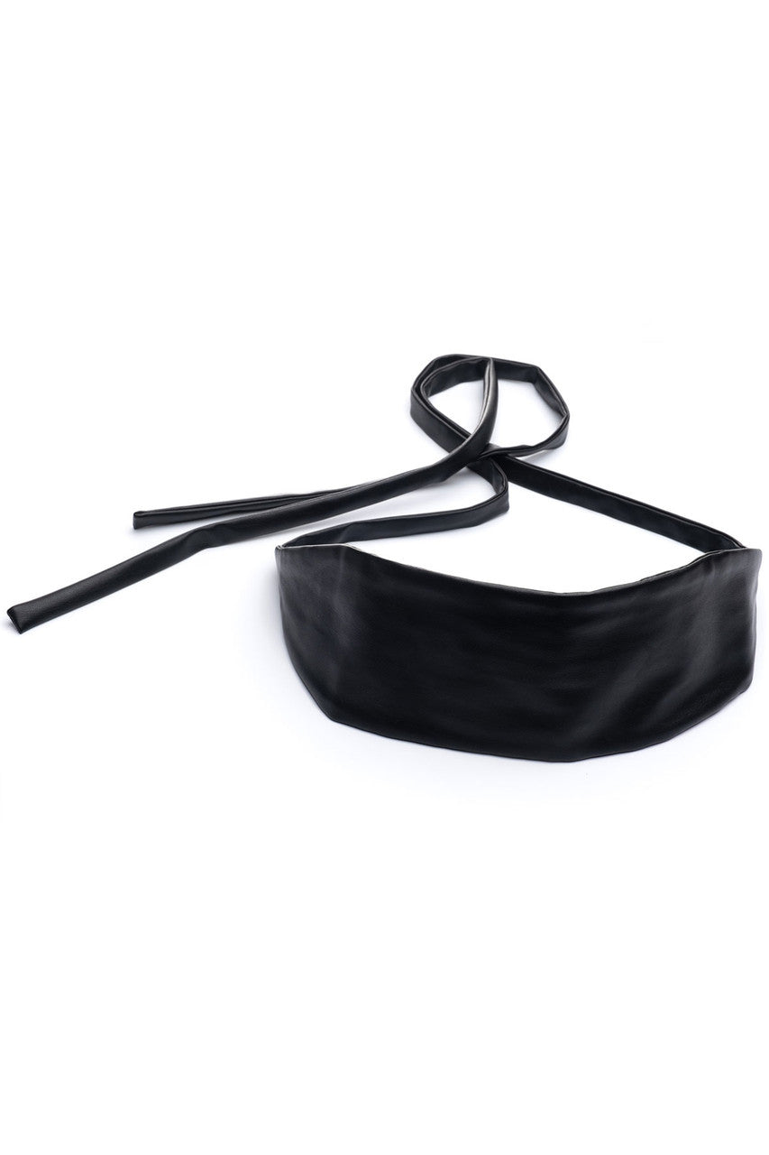 Faux Lambskin Obi Belt - Black