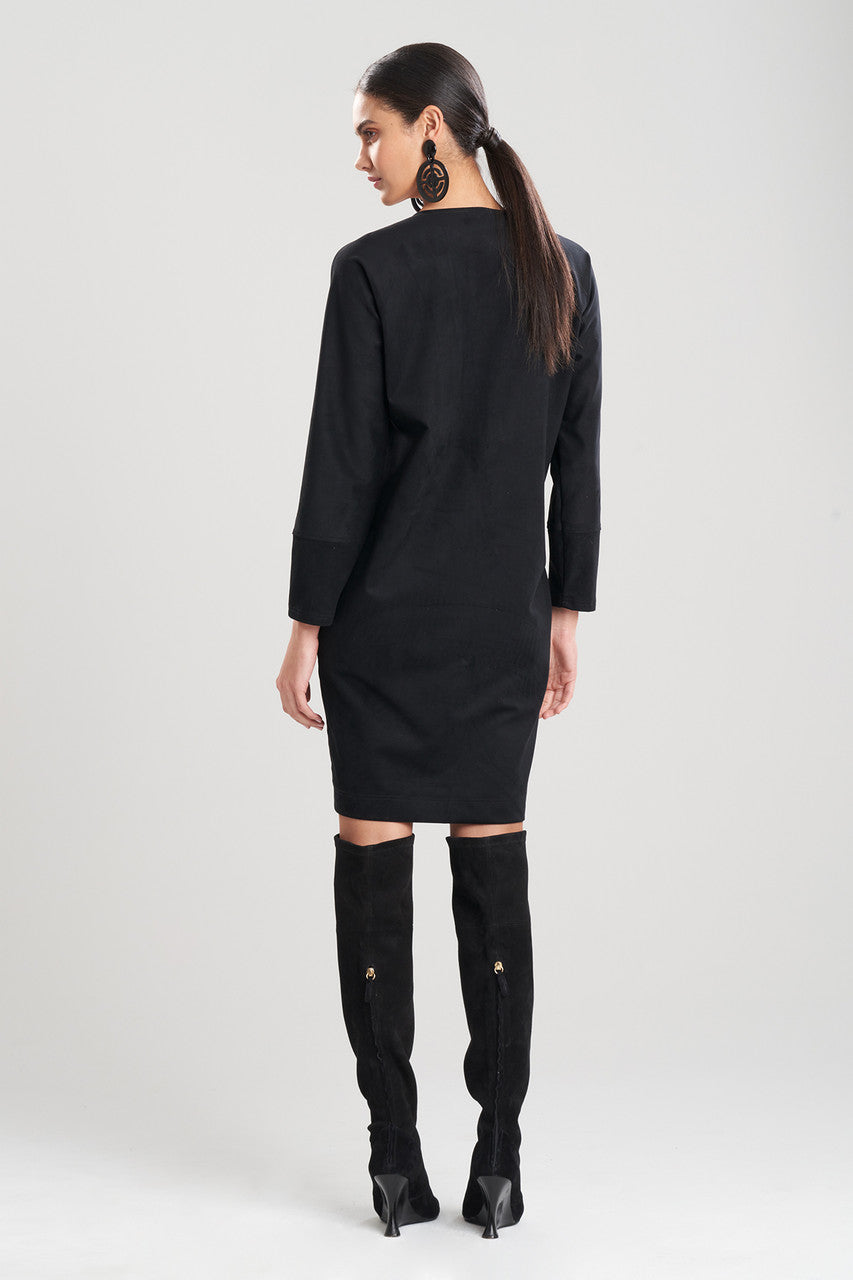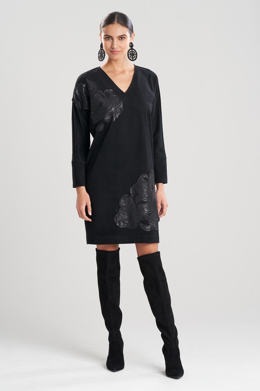 Faux Suede Applique Wedge Dress - Black