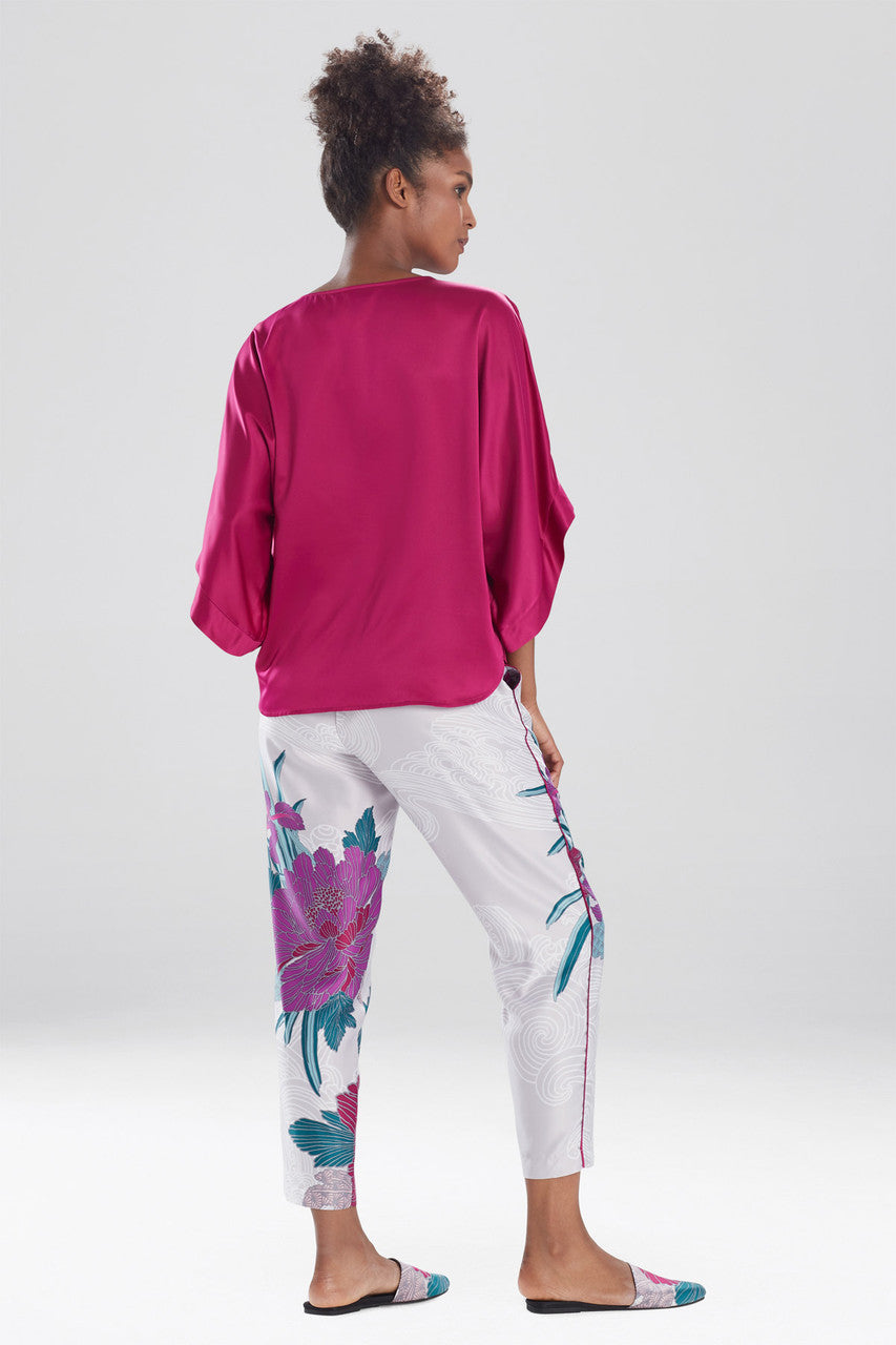 Feathers Satin Elements 3/4 Sleeve Top - cranberry