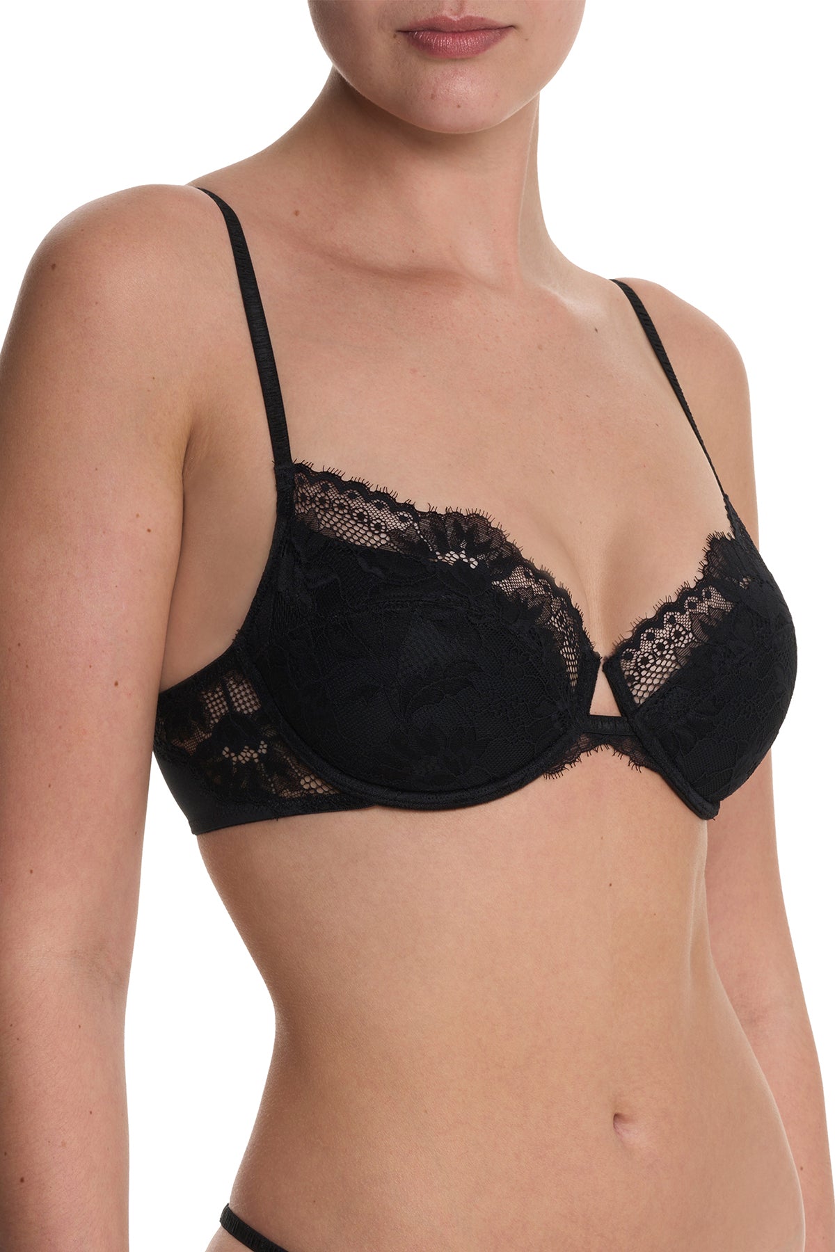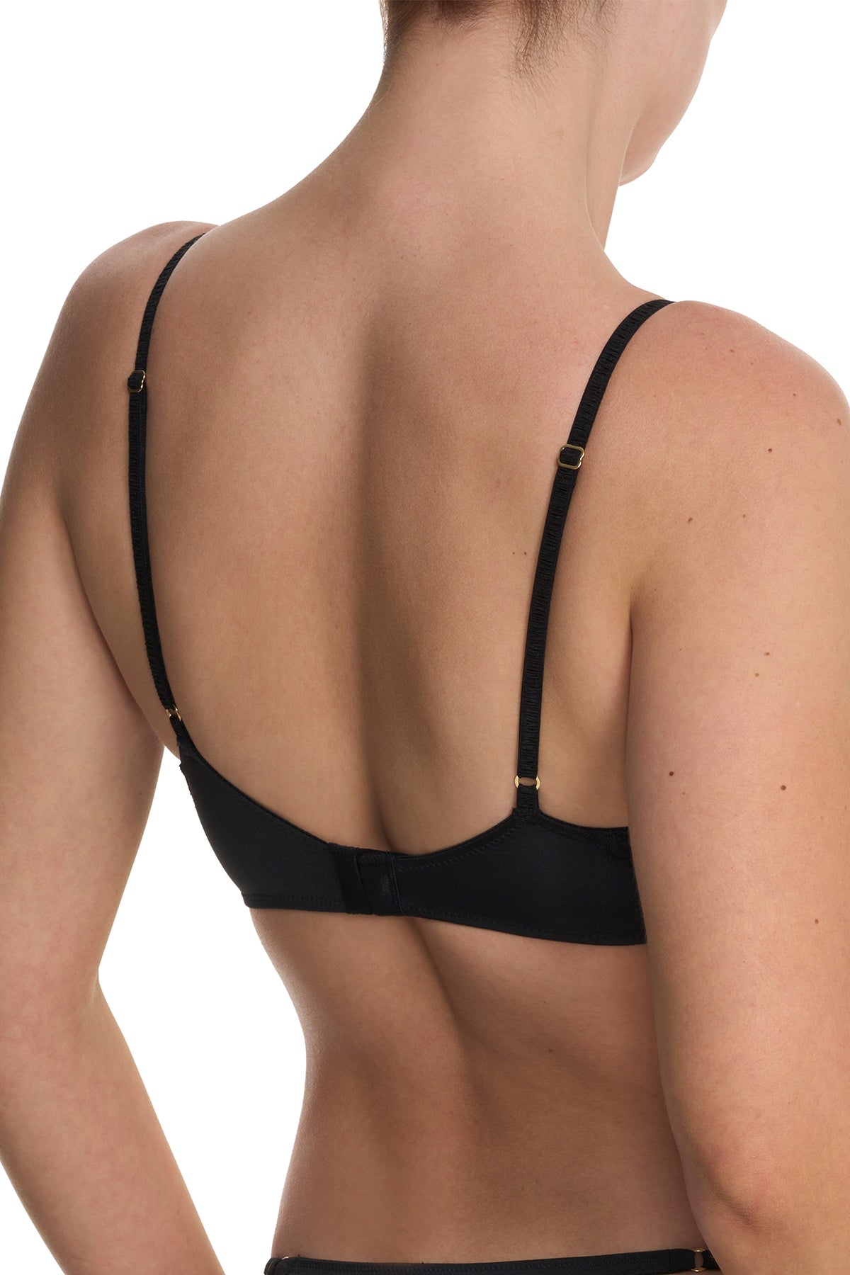 • 1-ply back featuring lace that transitions to smooth, shiny, stretch jersey for the perfect blend of beauty and comfort
