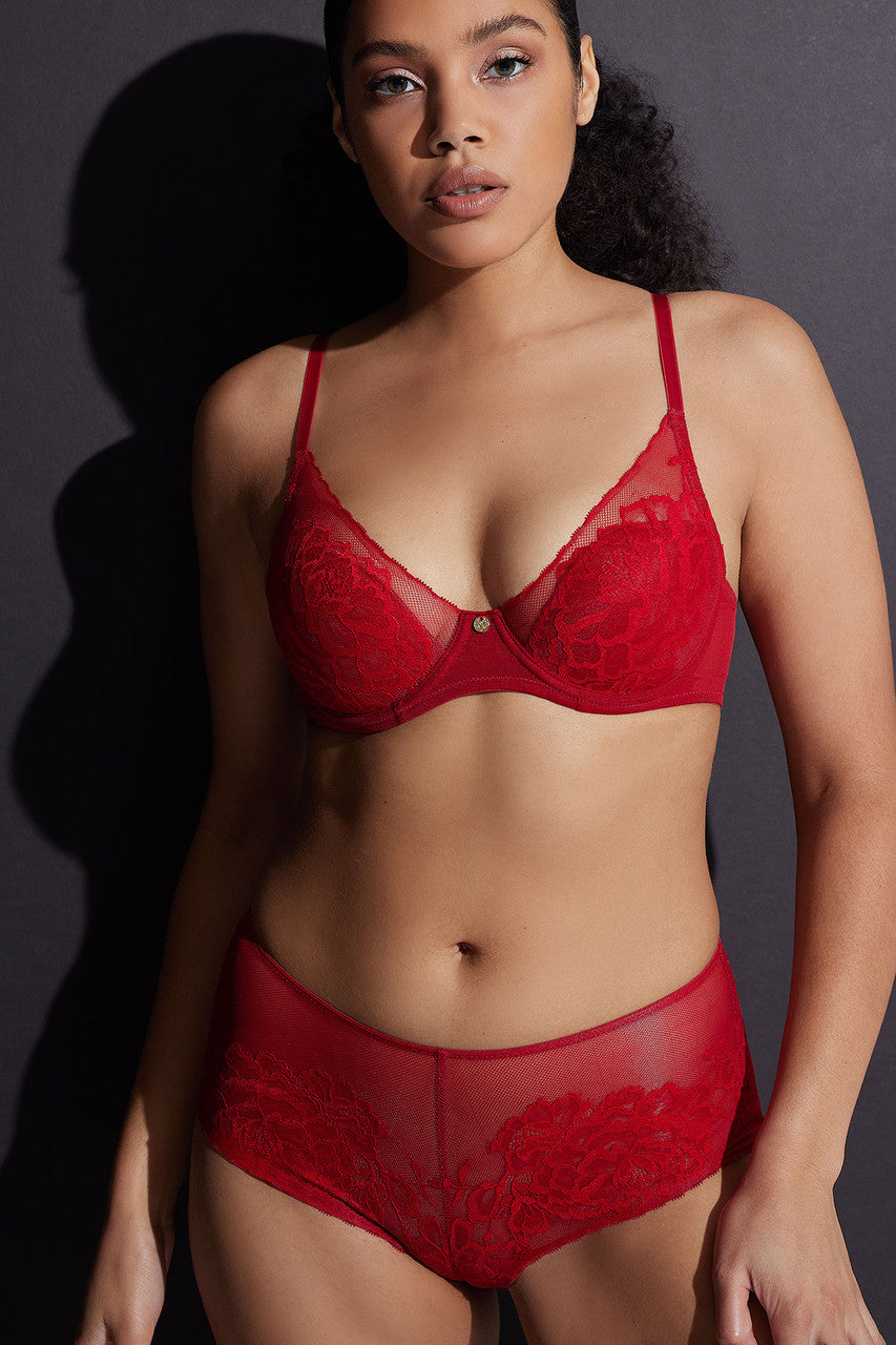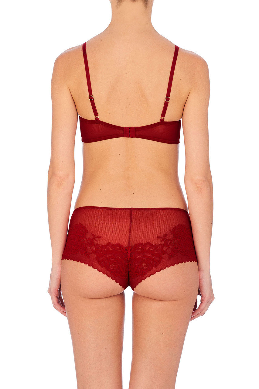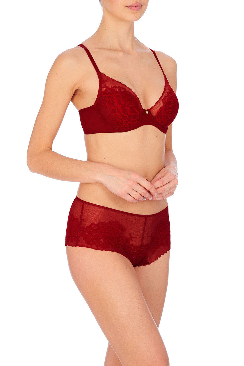 Innovative molded, floral lace overlays smooth cups for a seamless edge that disappears completely under clothes.
