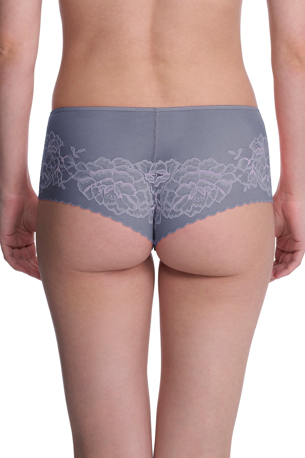 • Scalloped edge lace with no elastic at legs eliminates dig ins