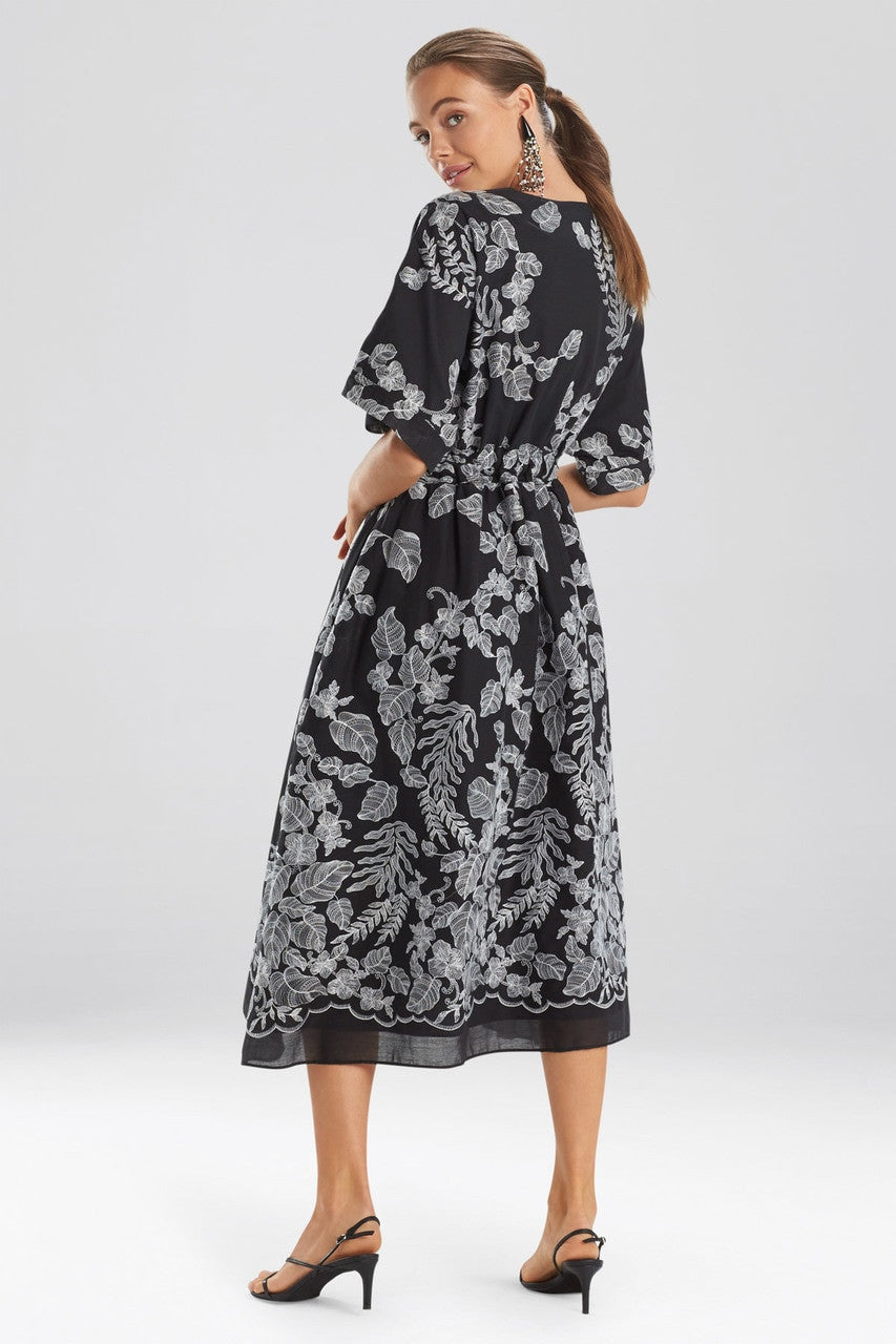 Floral Embroidery Caftan Dress - Black