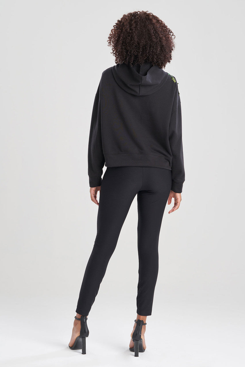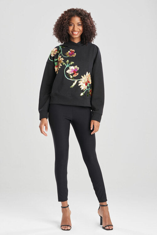 French Terry Chikayo Embroidered Crop Hoodie - Black