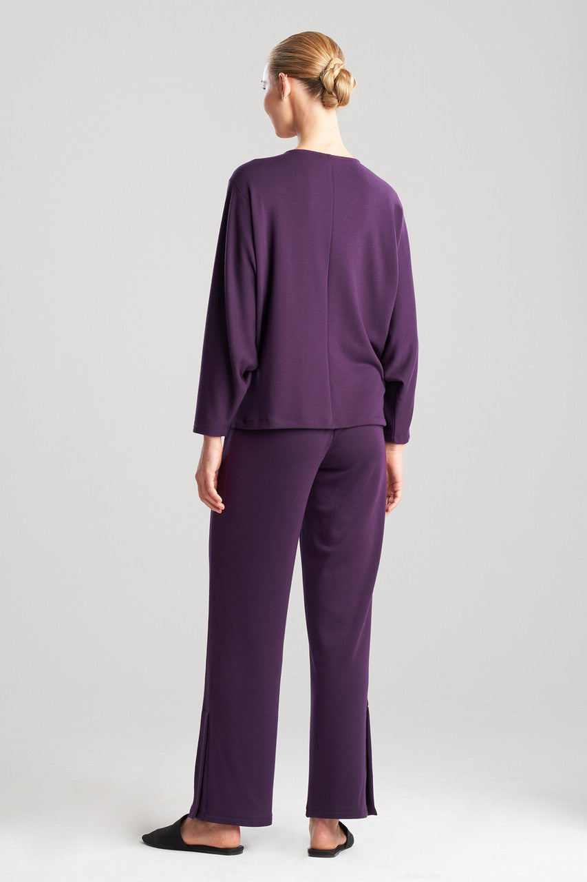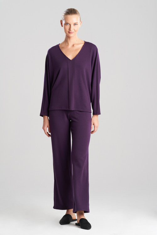 - This relaxed wedge shape lounge top has a v shape neckline, side slits at the bottom hem and inserted rib detailing at the center front