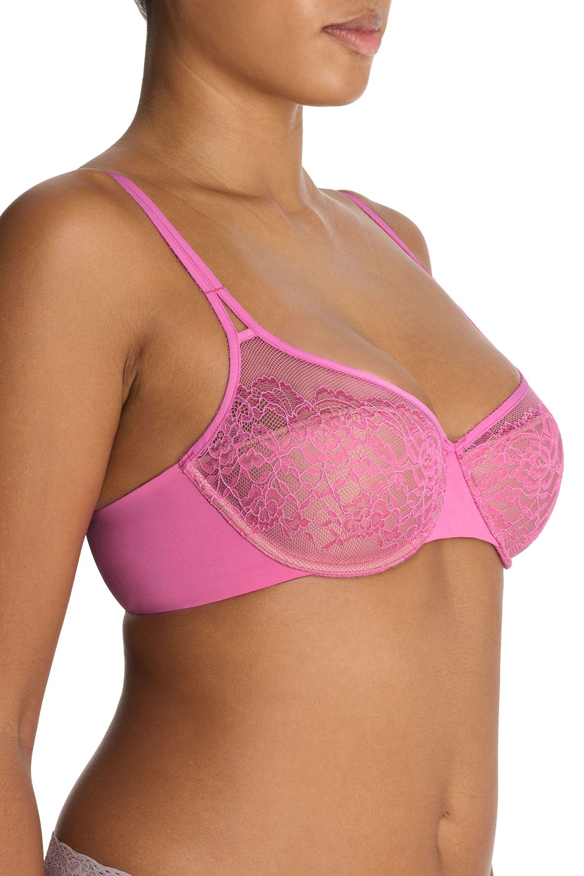 Designed with beautiful coverage and support, this balconette T-shirt bra features molded lace for a seamless look with no show-through. Offered in a full size range, it includes stretch cups, an open neckline, and beautiful feminine details for the perfect fit.