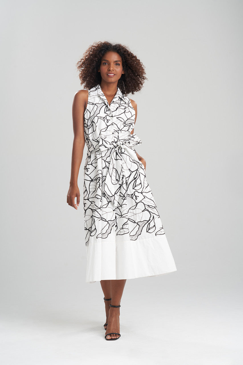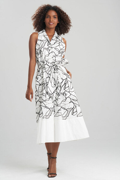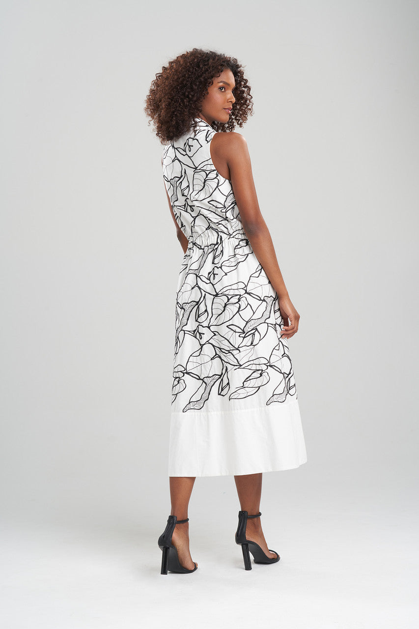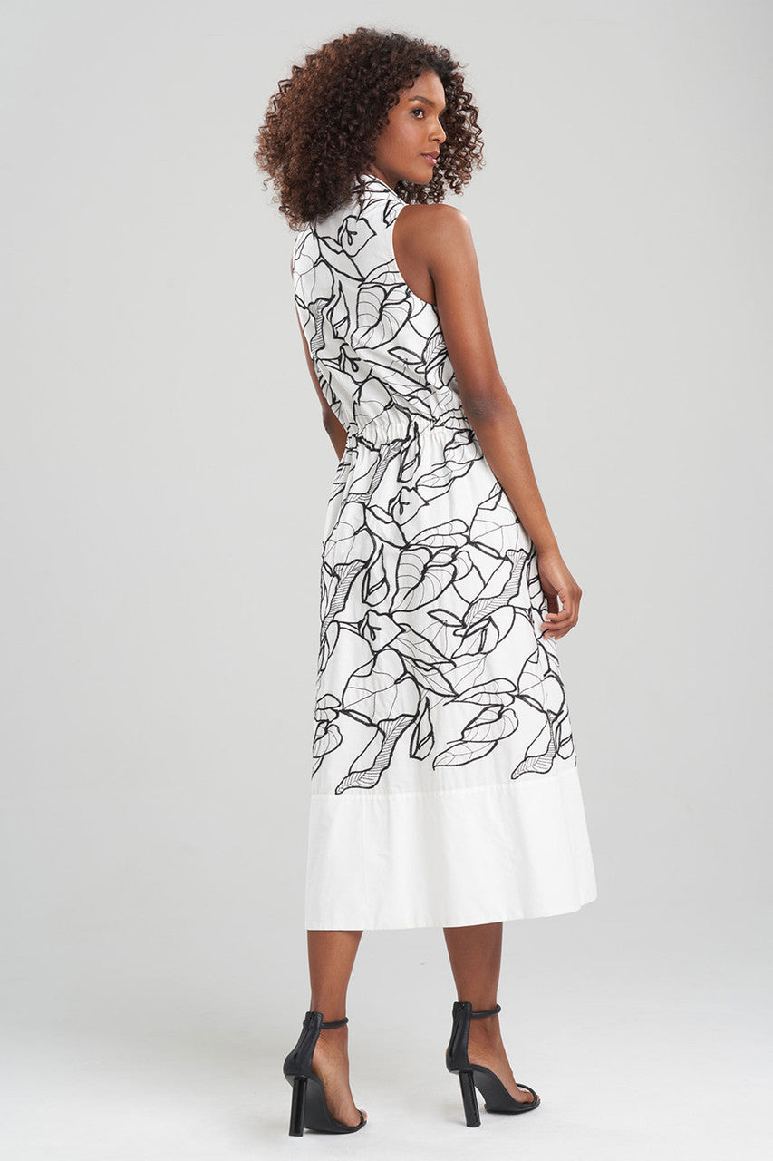 Hana Cotton Poplin Embroidered Halter Dress - white/black