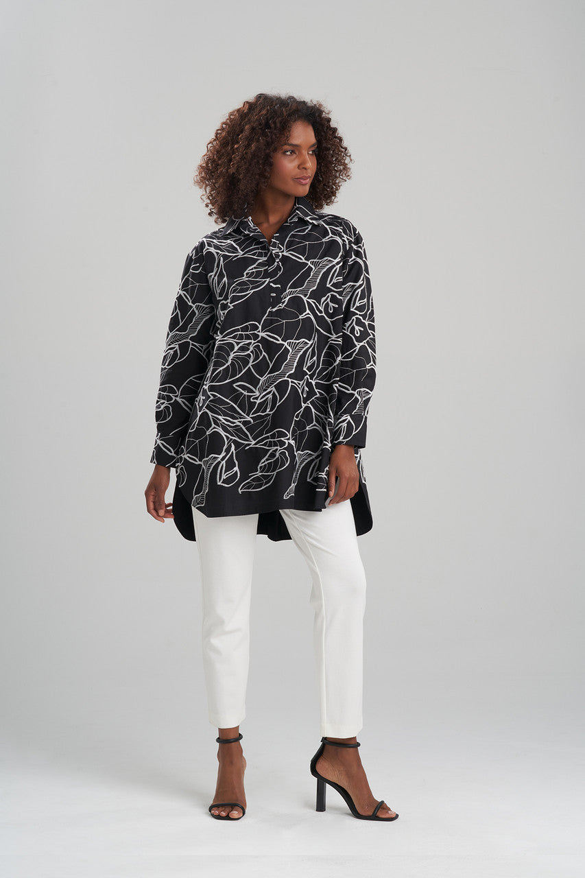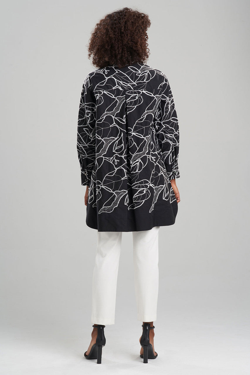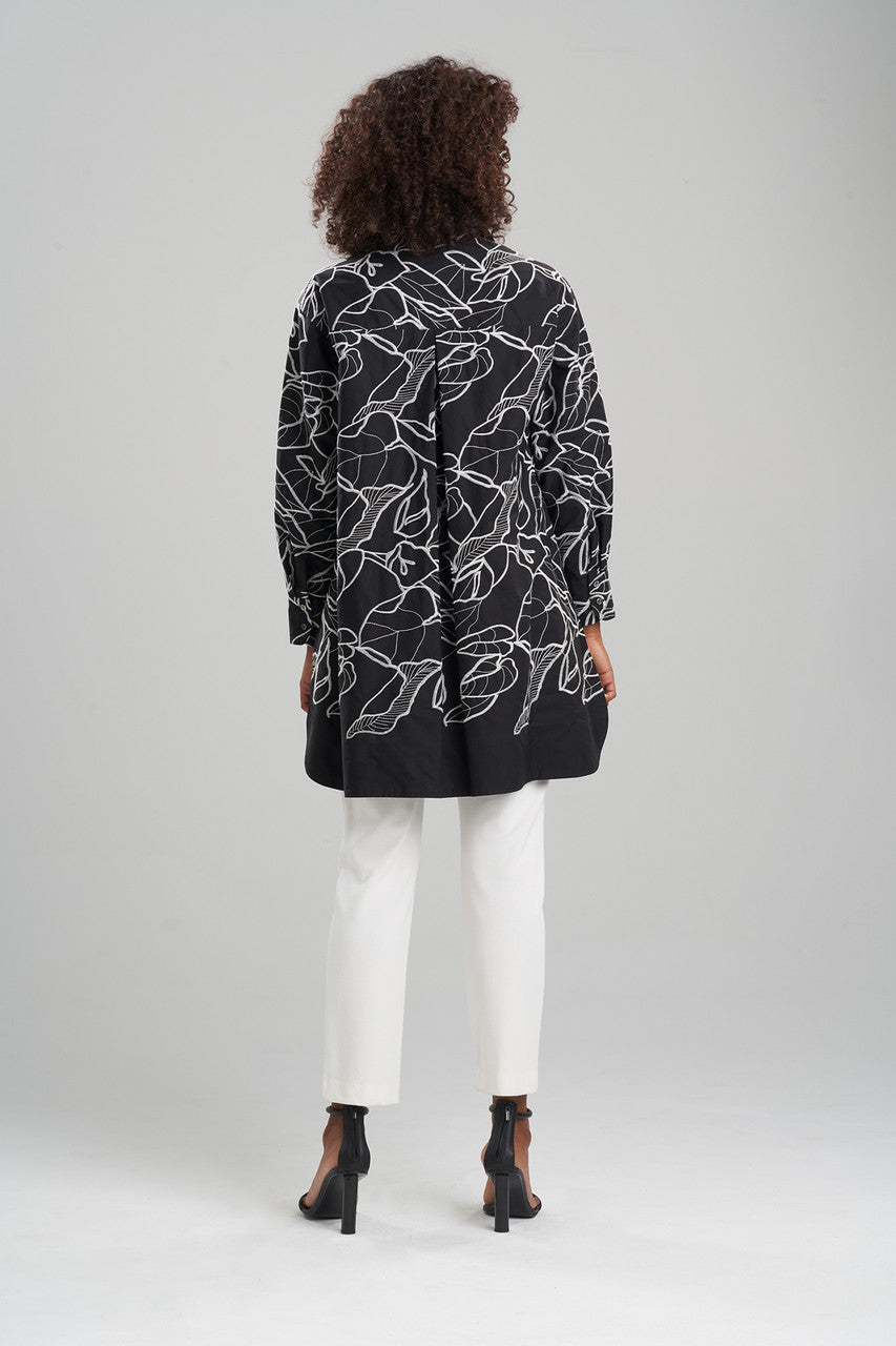 Hana Cotton Poplin Embroidered Shirt - black/white