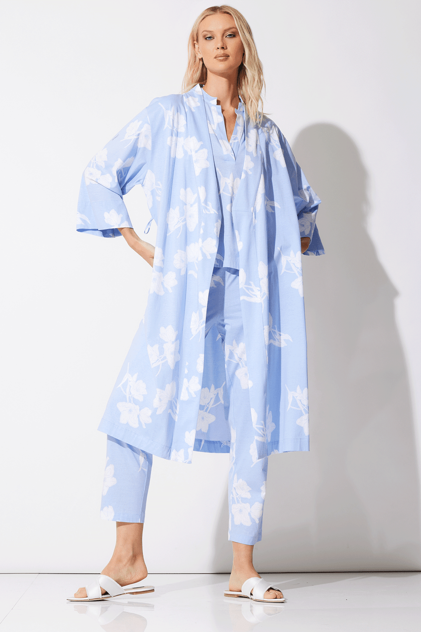 Feminine florals printed in periwinkle.