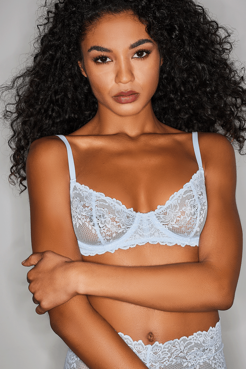 • Non-padded lace cups with fishnet ground to offer subtle modesty
