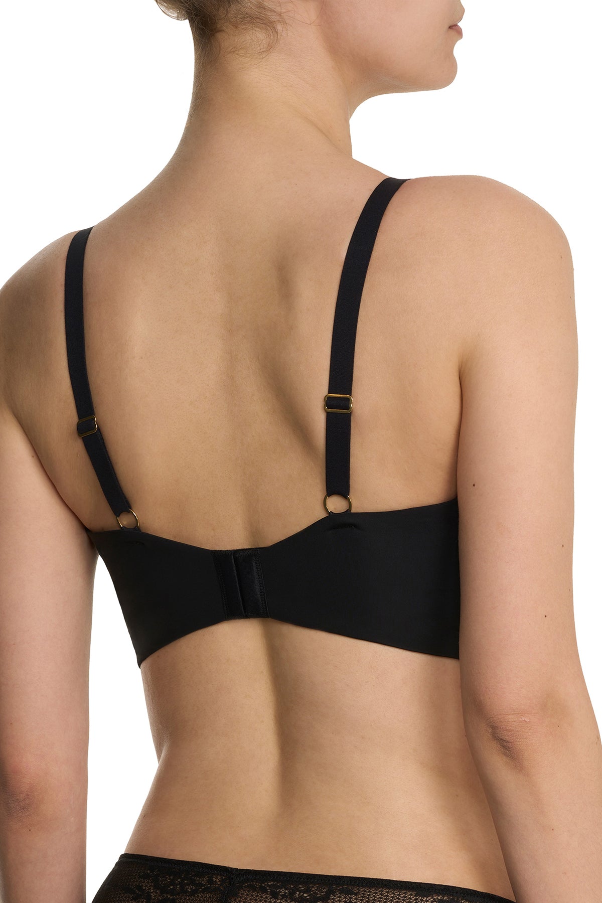 • Three part stretch lace cups feature a stretch top cup paired with rigid bottom cup to provide soft shaping and lift