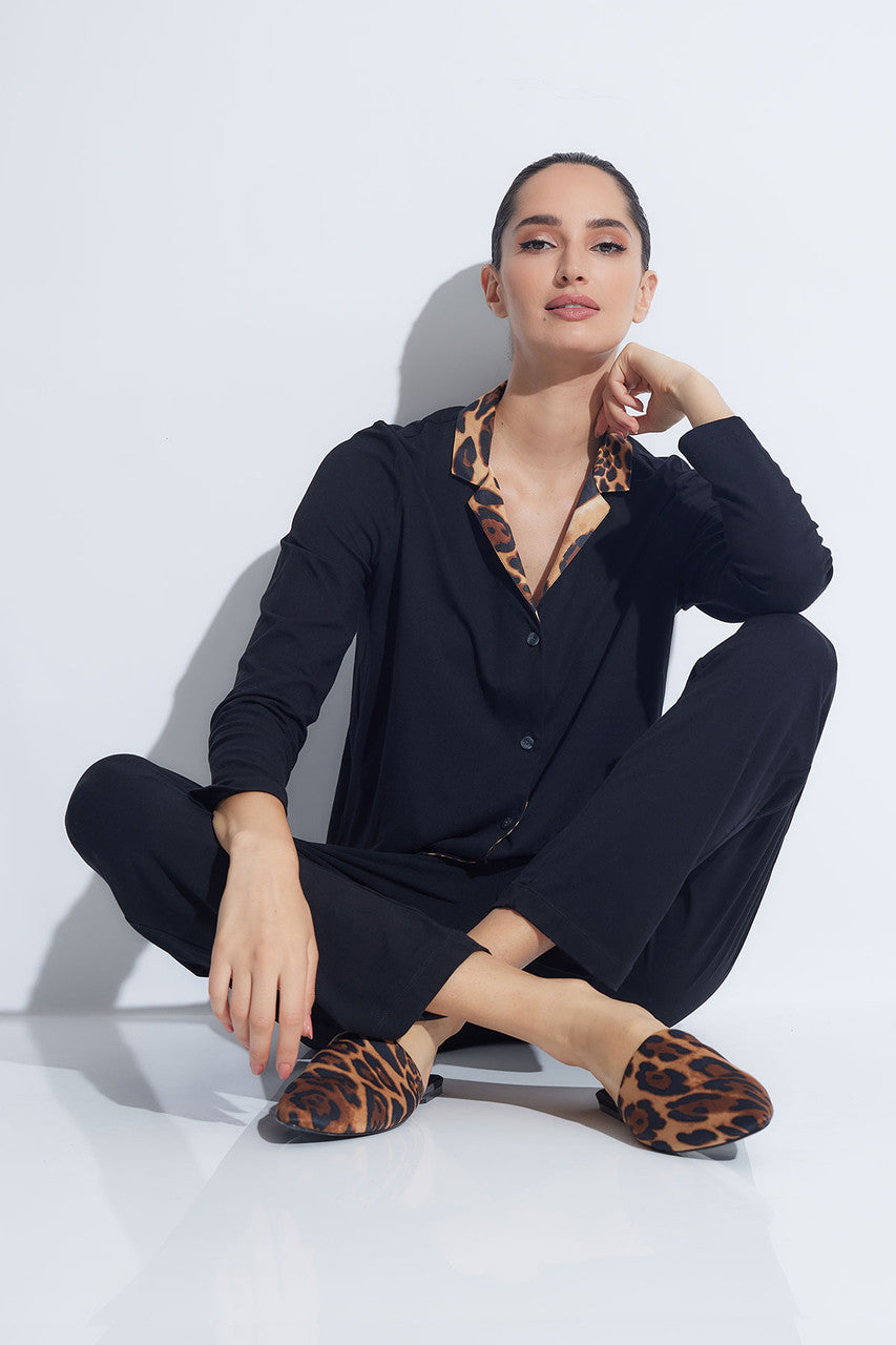Himalaya Luxe Leopard Collar Notch PJ - Black