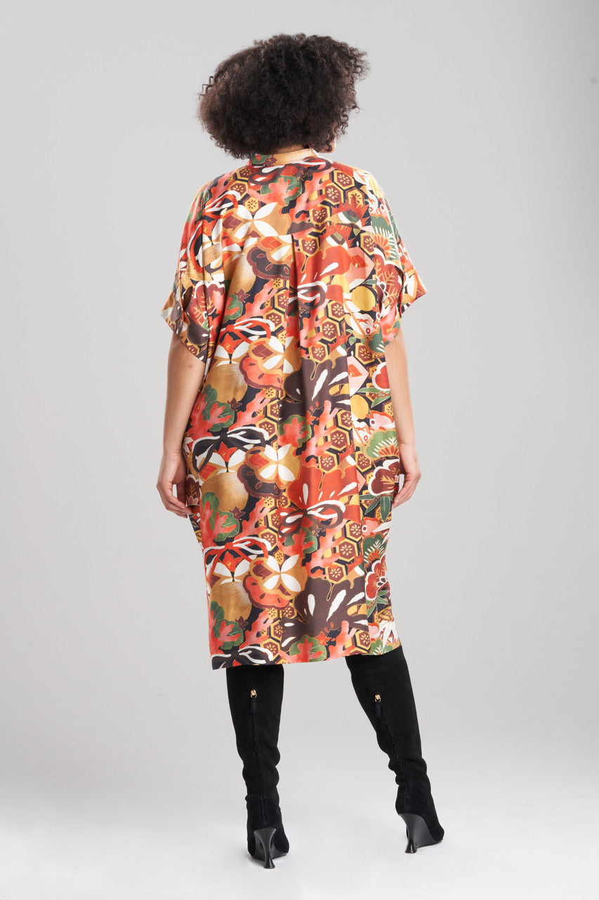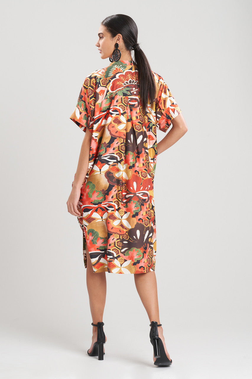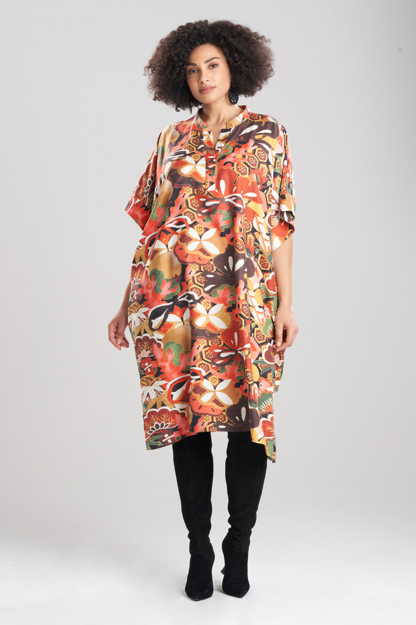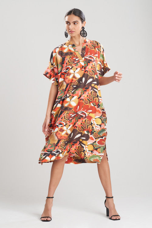 - An oversized caftan dress with a half placket and wide sleeves in our cotton silk twill