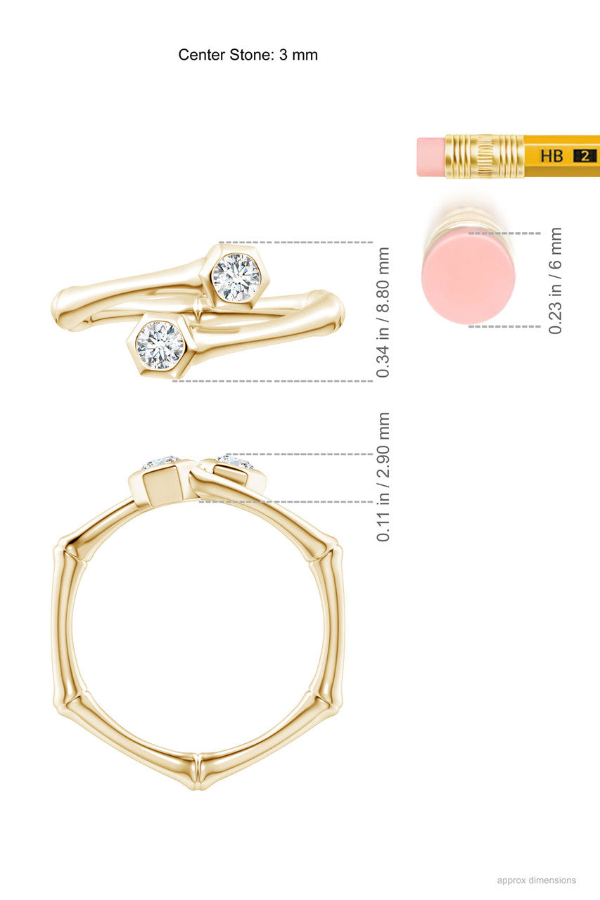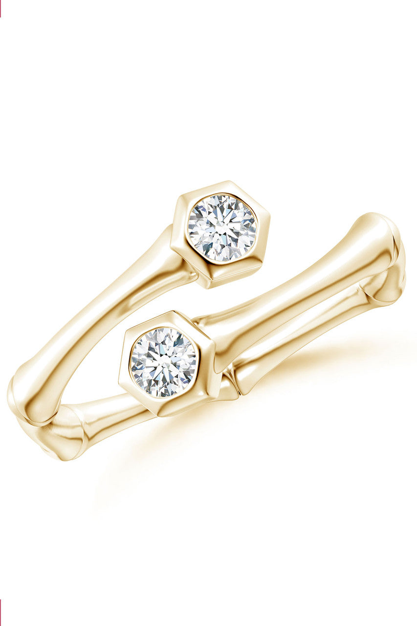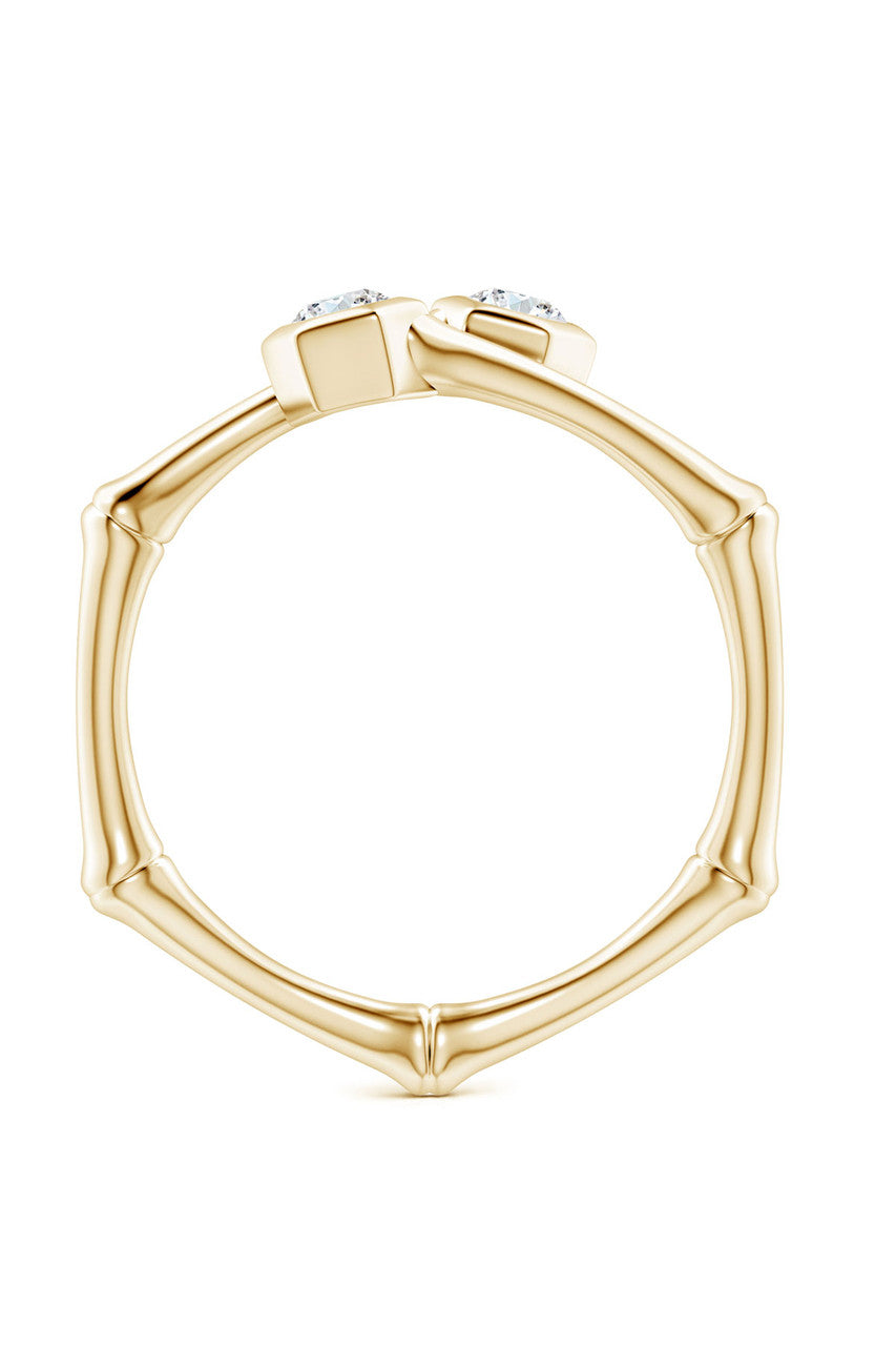 Indochine 14k Black & White Diamond Bamboo Bypass Ring - 14k yellow gold