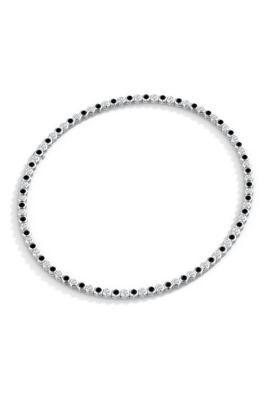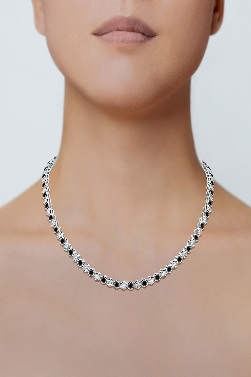 Indochine 14k Black & White Diamond Hexagon Tennis Necklace - 14k white gold
