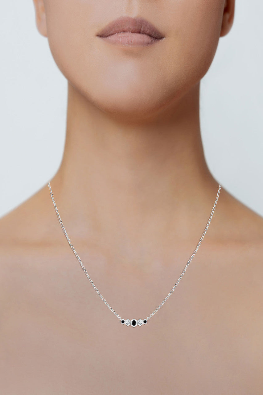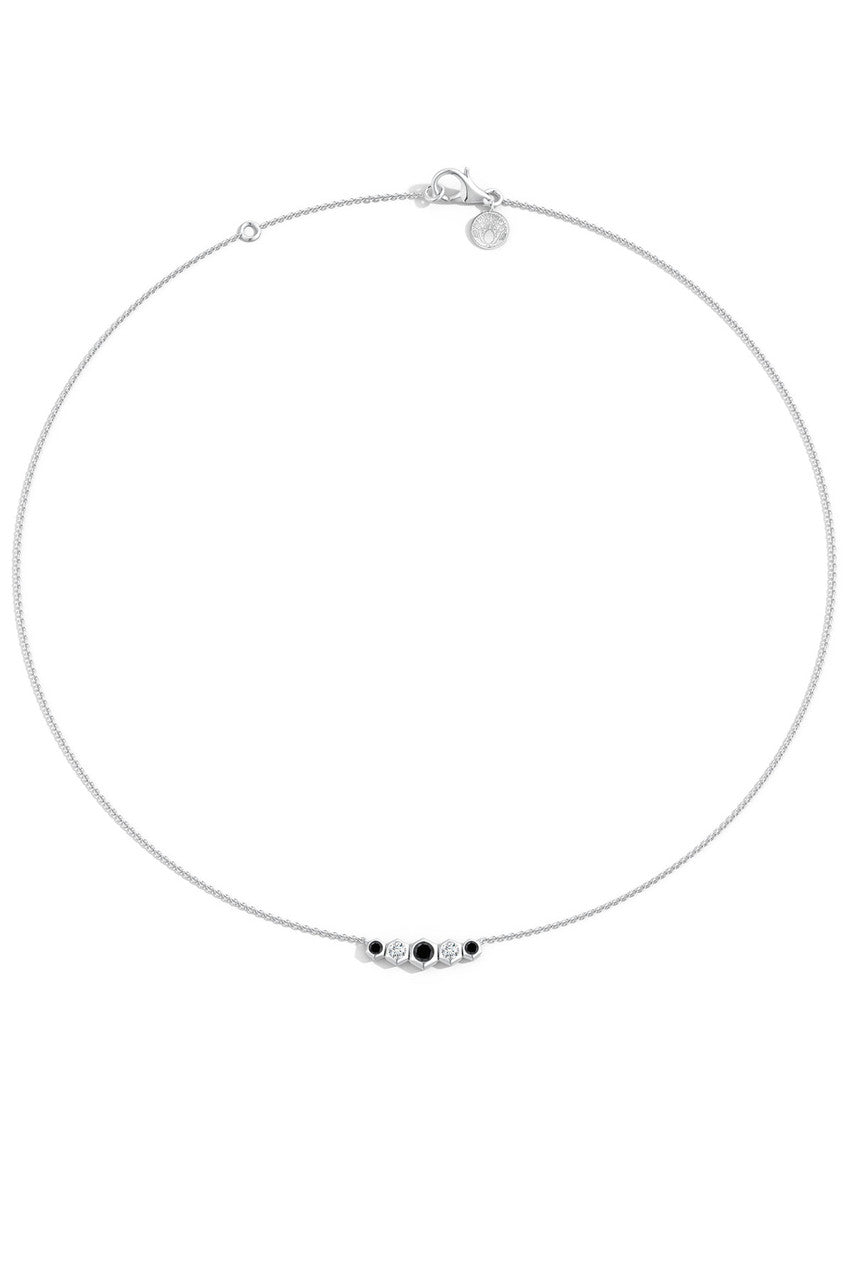 Indochine 14k Black & White Diamond Tapering Hexagon Bar Necklace - 14k white gold