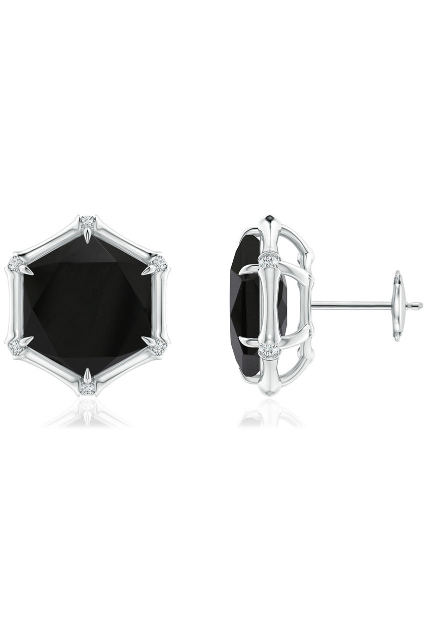 Indochine 14k Hexagon Black Onyx & Diamond Stud Earrings - 14k white gold