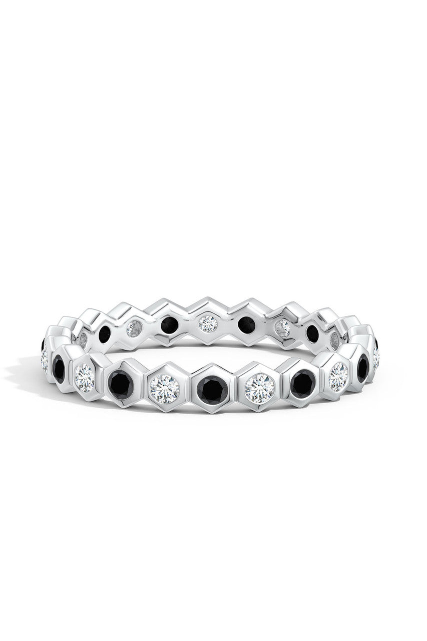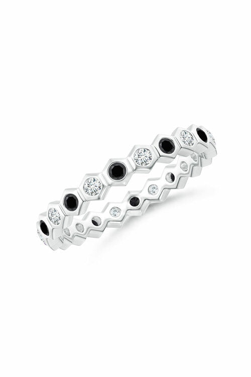 Indochine 14k Hexagon Black & White Diamond Stacking Eternity Band Ring - 14k white gold