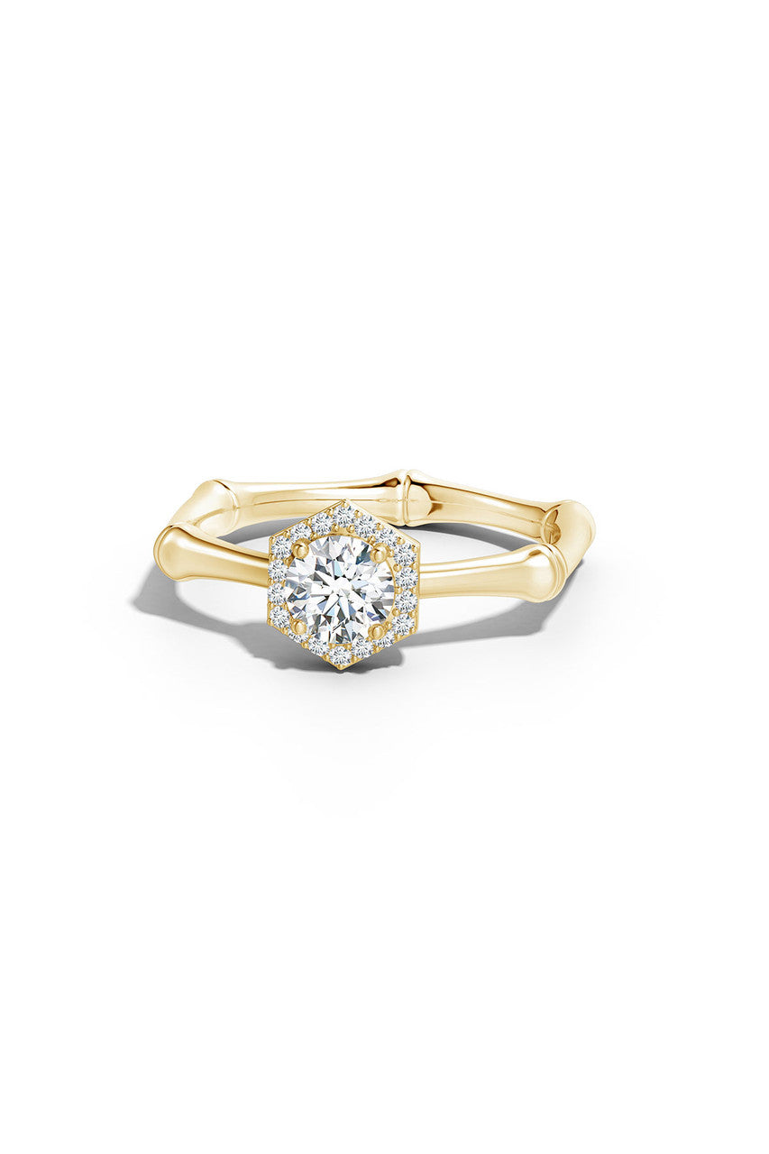 Indochine 14k Hexagon Diamond Pave Halo Bamboo Ring