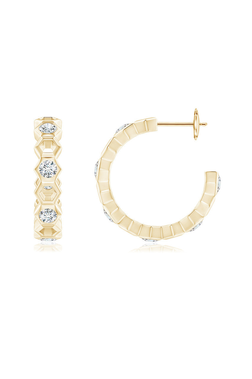 Indochine 14k Small Alternate Stacked Hexagon Diamond Hoop Earrings